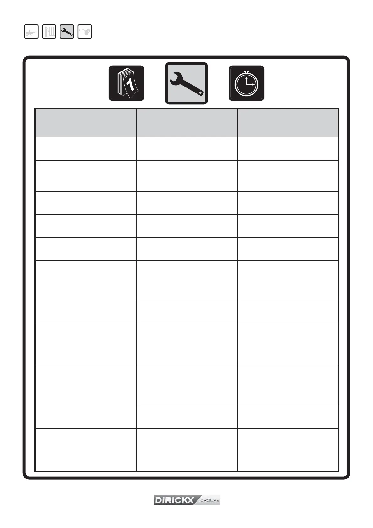 DIRICKX ALLIANCE PLUS - Maintenance Schedule; Regular Component Checks