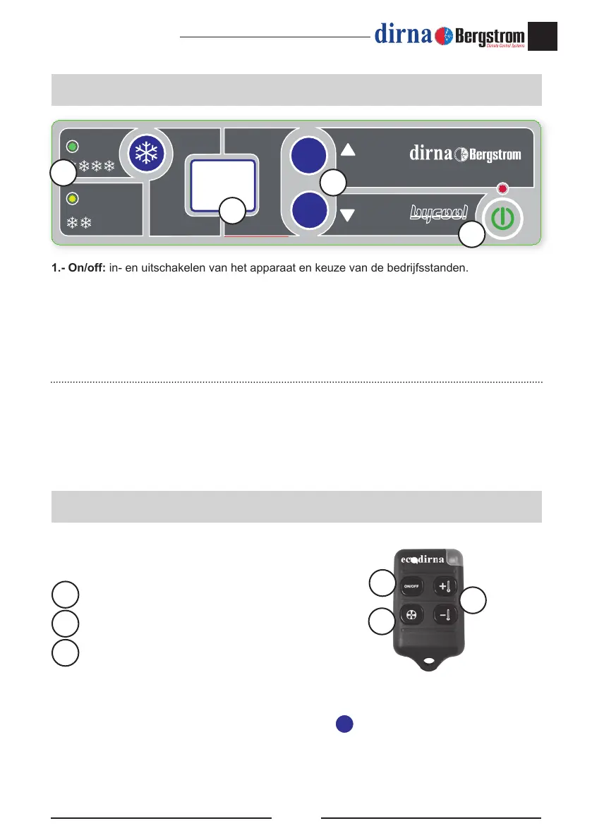 1.- On/off: in- en uitschakelen van het apparaat en keuze van de bedrijfsstanden.