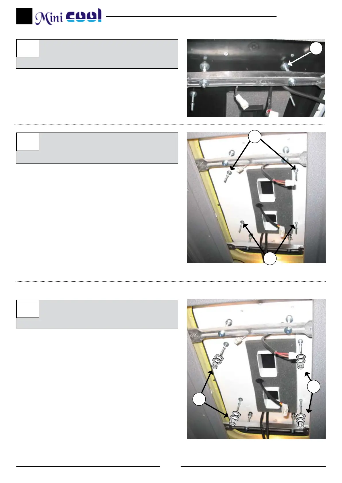 Place (2) fastening supports, with (1) washer