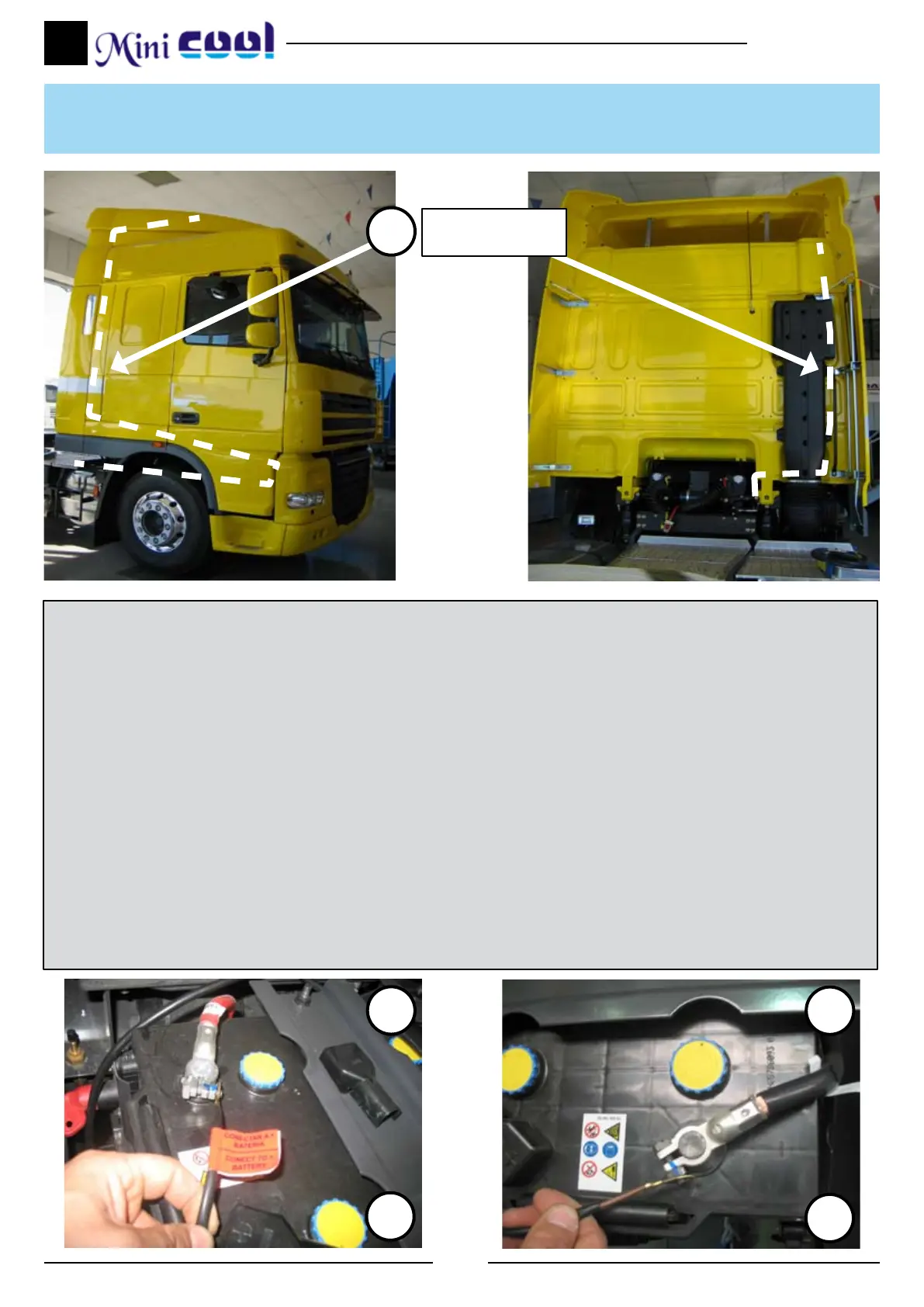 1- Portare il cavo dell’alimentazione dall’apparecchiatura no alla batteria del veicolo, collocando i supporti in