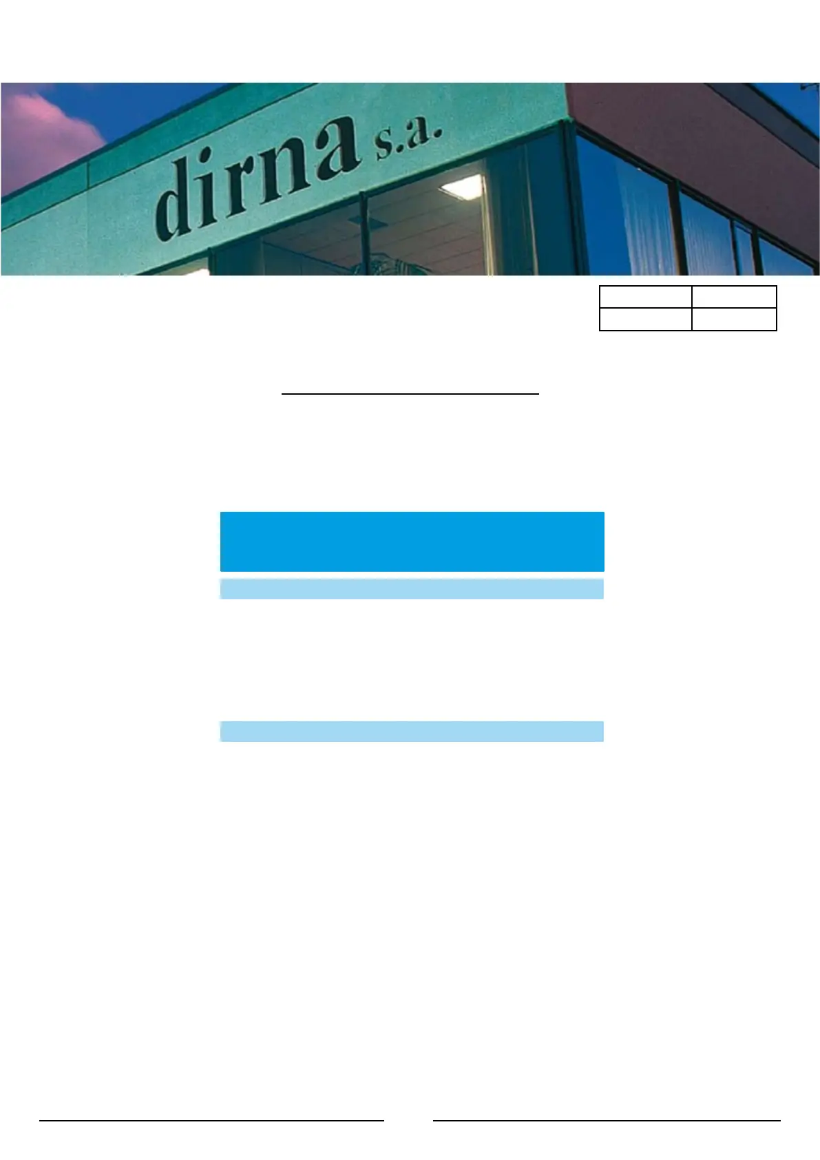 NOTE: For technical and commercial reasons, Dirna reserves the right to change the data contained in this brochure