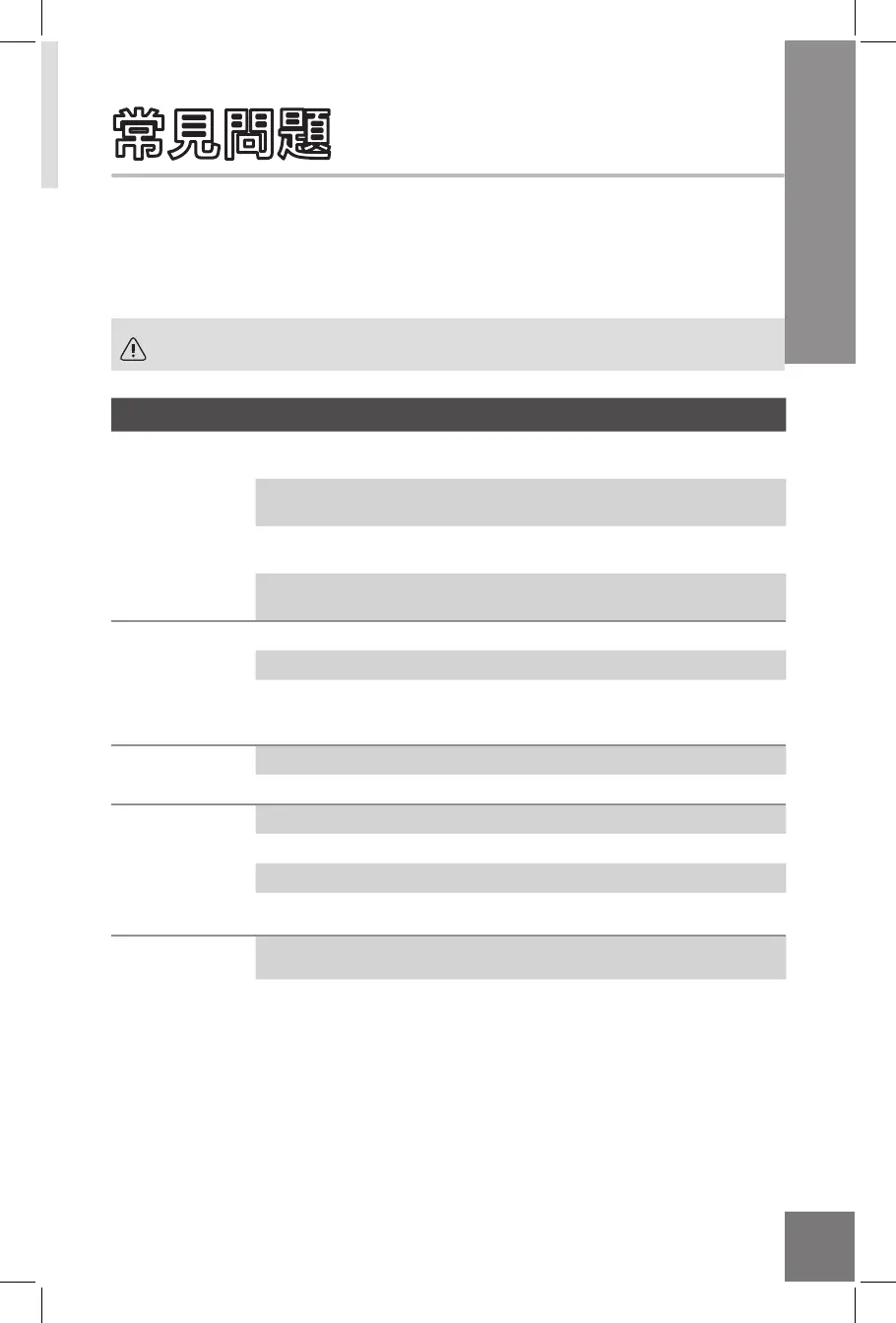4. 過熱保護裝置已啟動。 4. 關掉吸塵機及冷卻30分鐘(以重新校正過