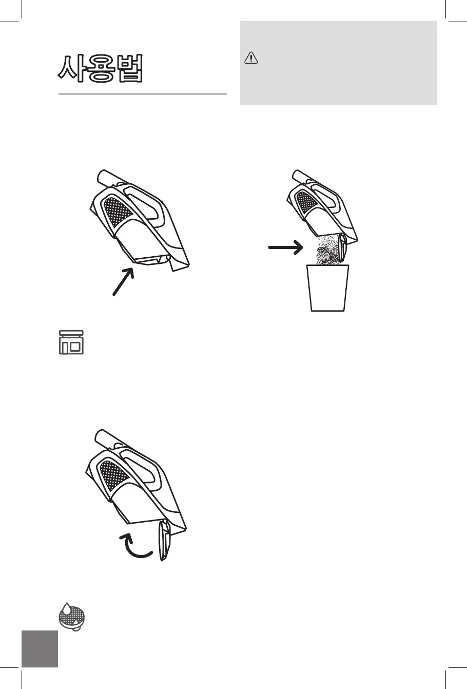 1. 먼지통 덮개 걸쇠를 누릅니다. 2. 오 물 을 버 립 니 다 . 잔 해 를 모 두