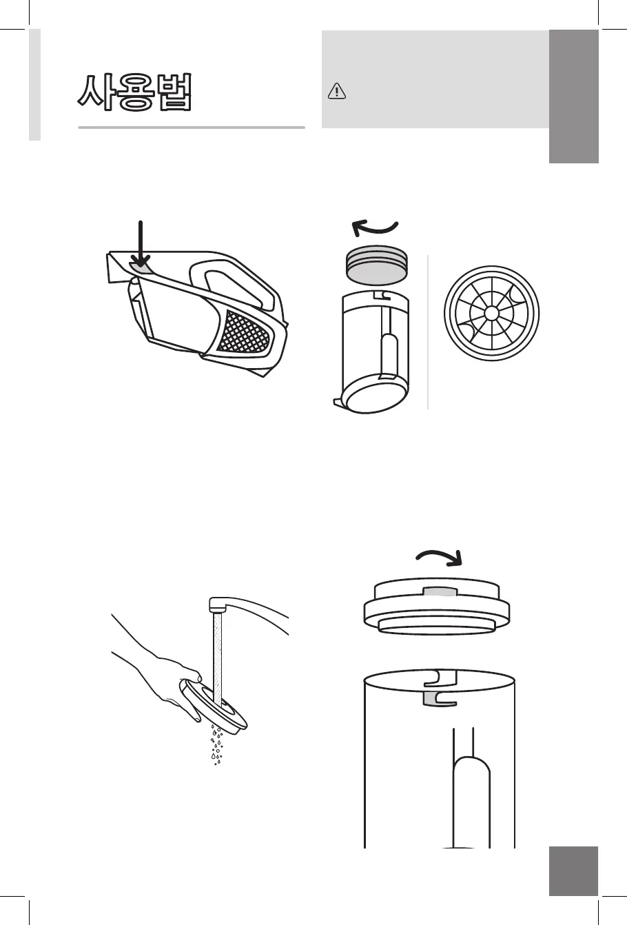 3. 필터를 오물이 제거 때까지 물로