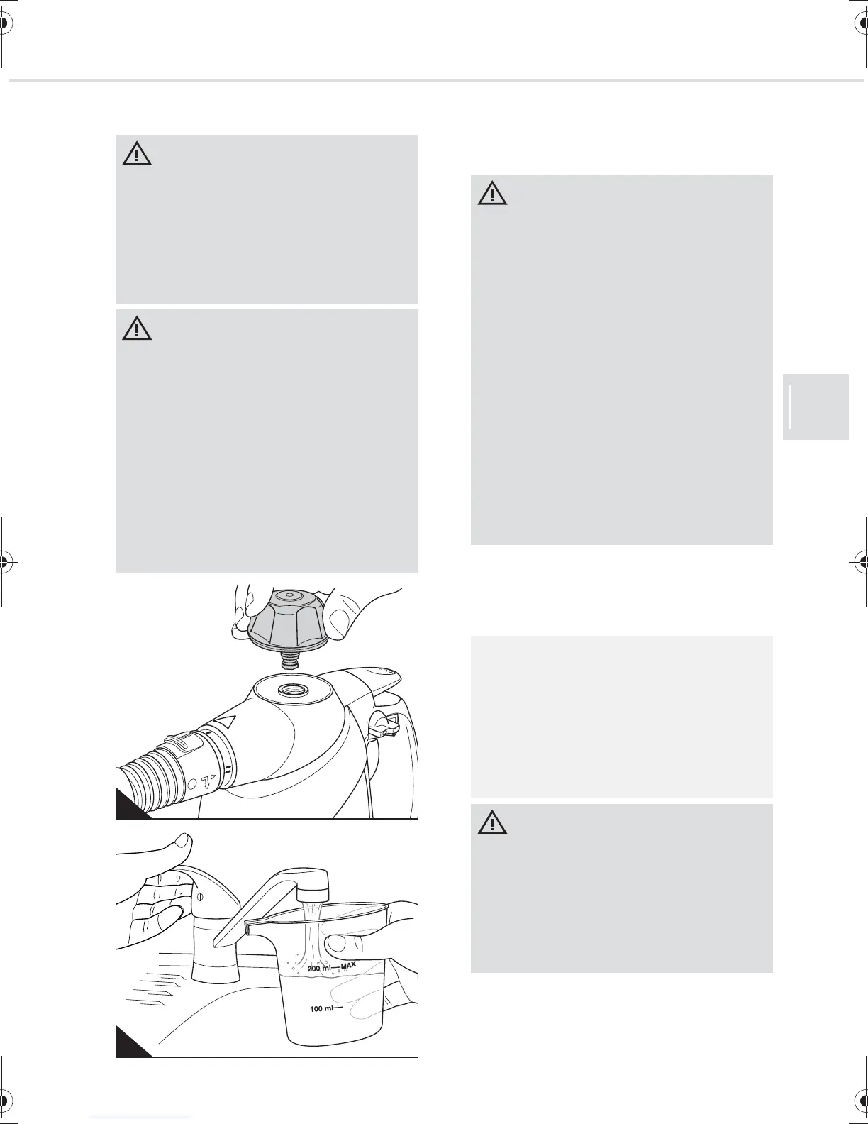 Danger d'échaudures ! Le réservoir d'eau