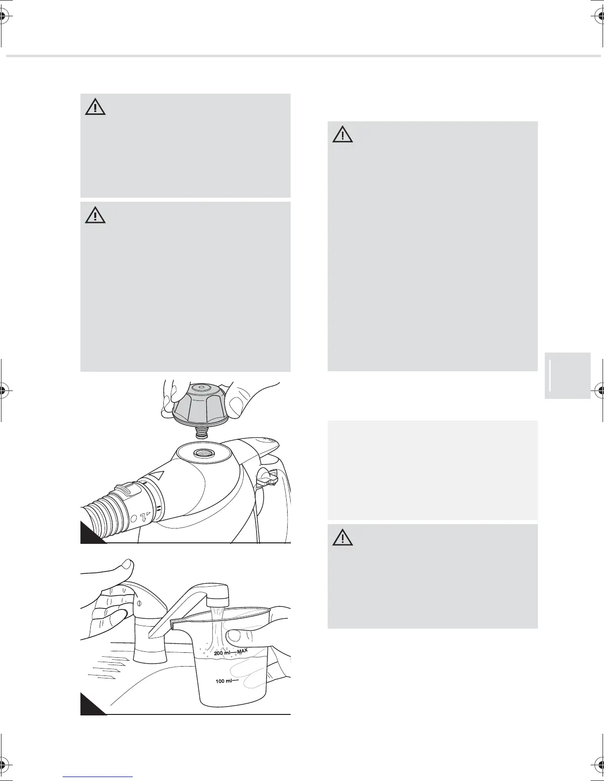 nog heet zijn. Vul de watertank steeds voor-