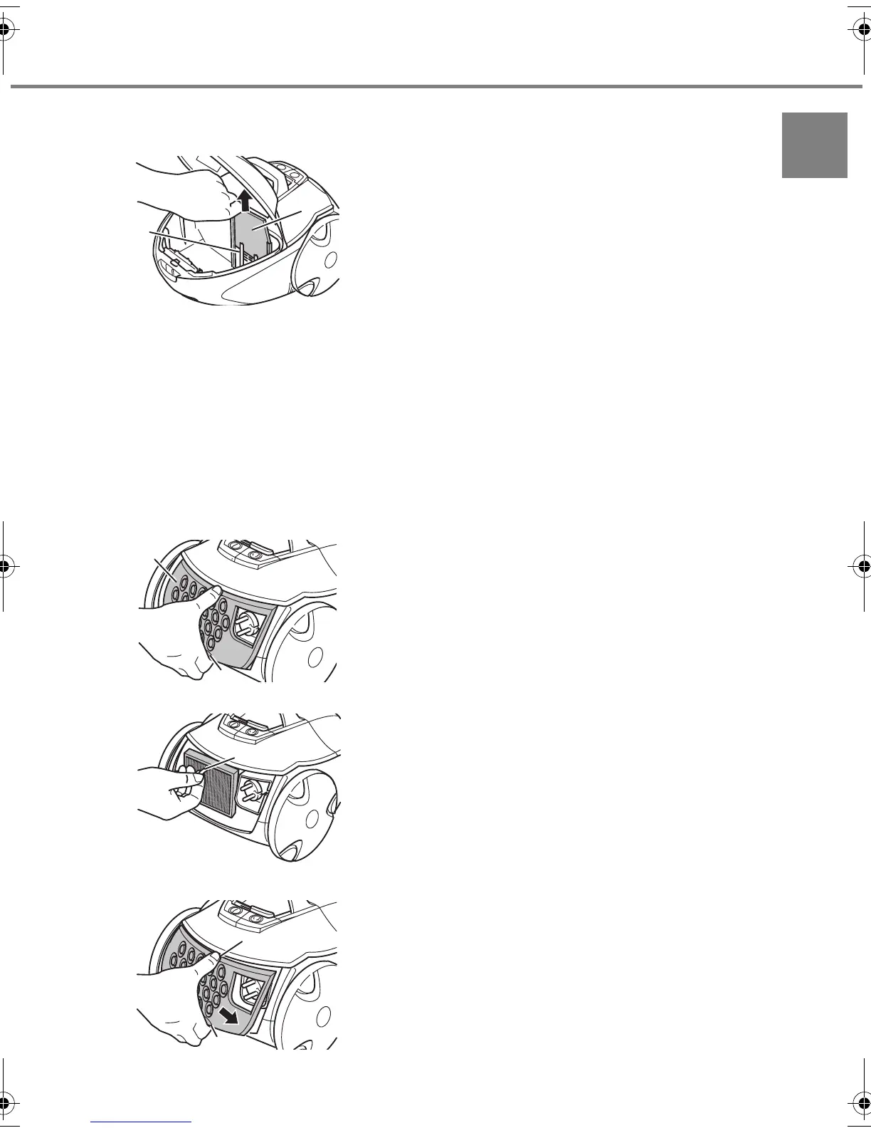 2. Öffnen Sie die Ausblasfilter-Abdeckung. Drücken Sie