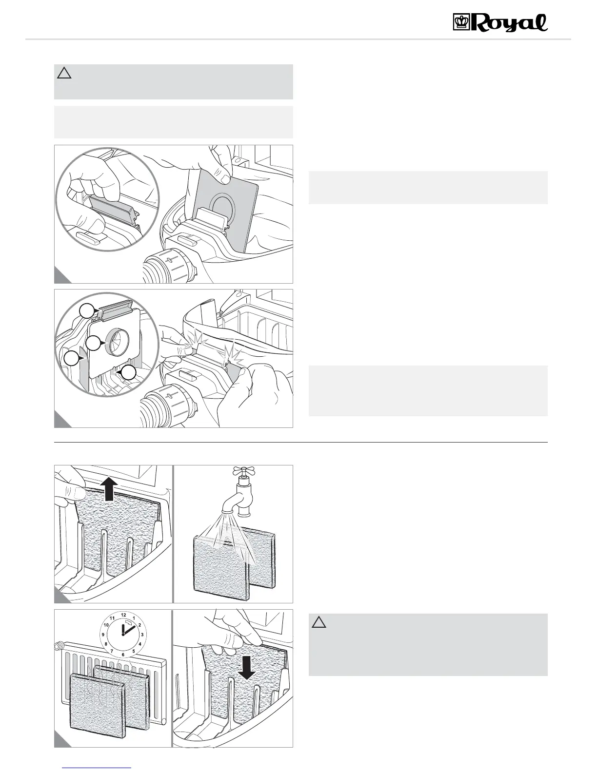 « Remplacement du sac-filtre à poussière », étapes 1 à 4.