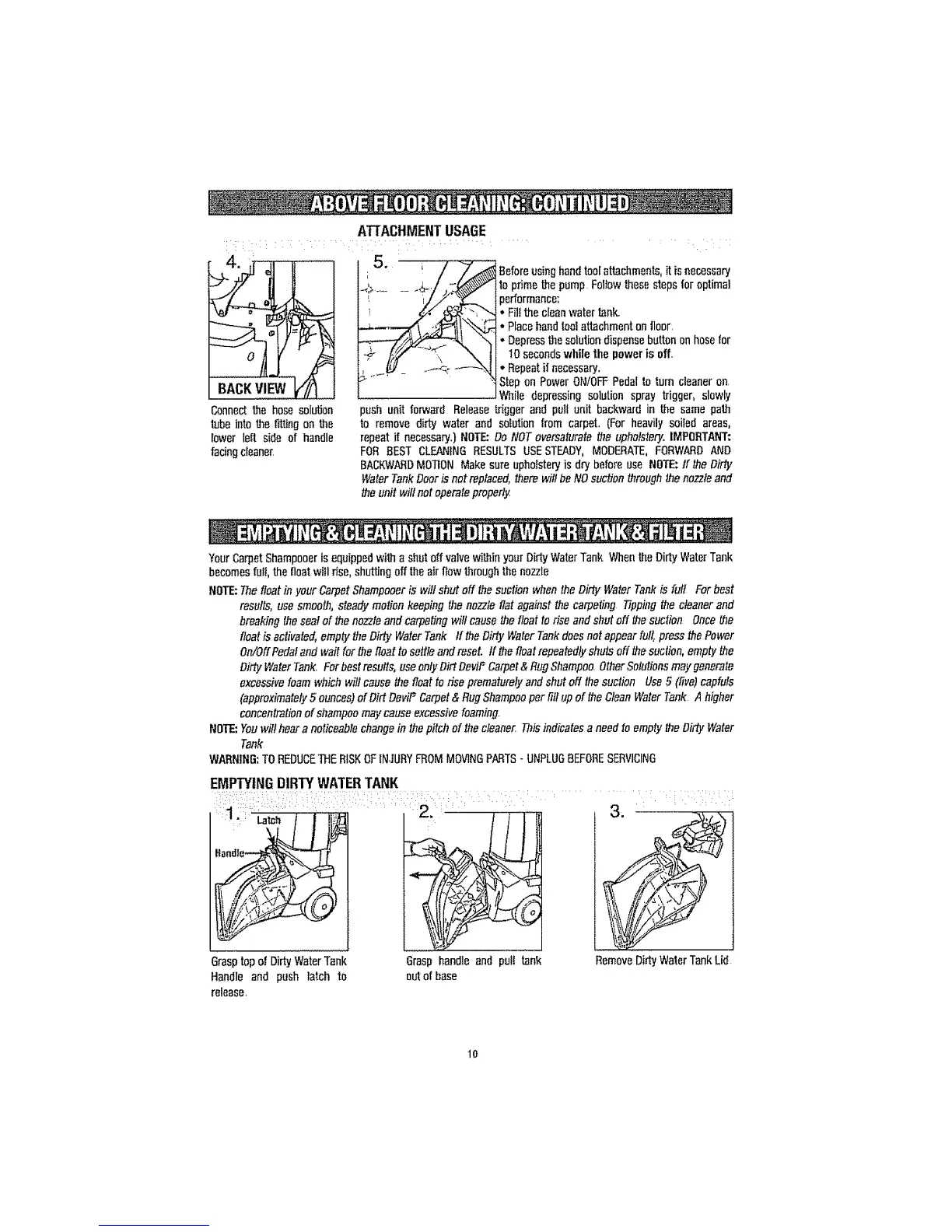 NOTE:Youwill hear a noticeablechangein the pitch of the cleane_ Thisindicates a need to emptythe Dirty Water