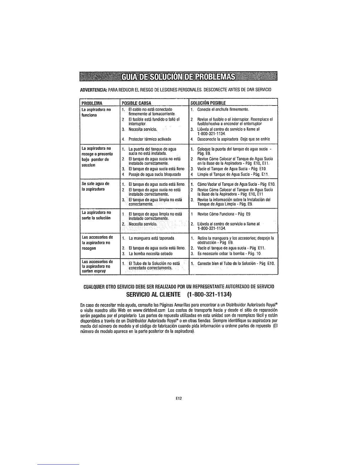 SERVlCIOAL CLIENTE (1-800-321-1134)