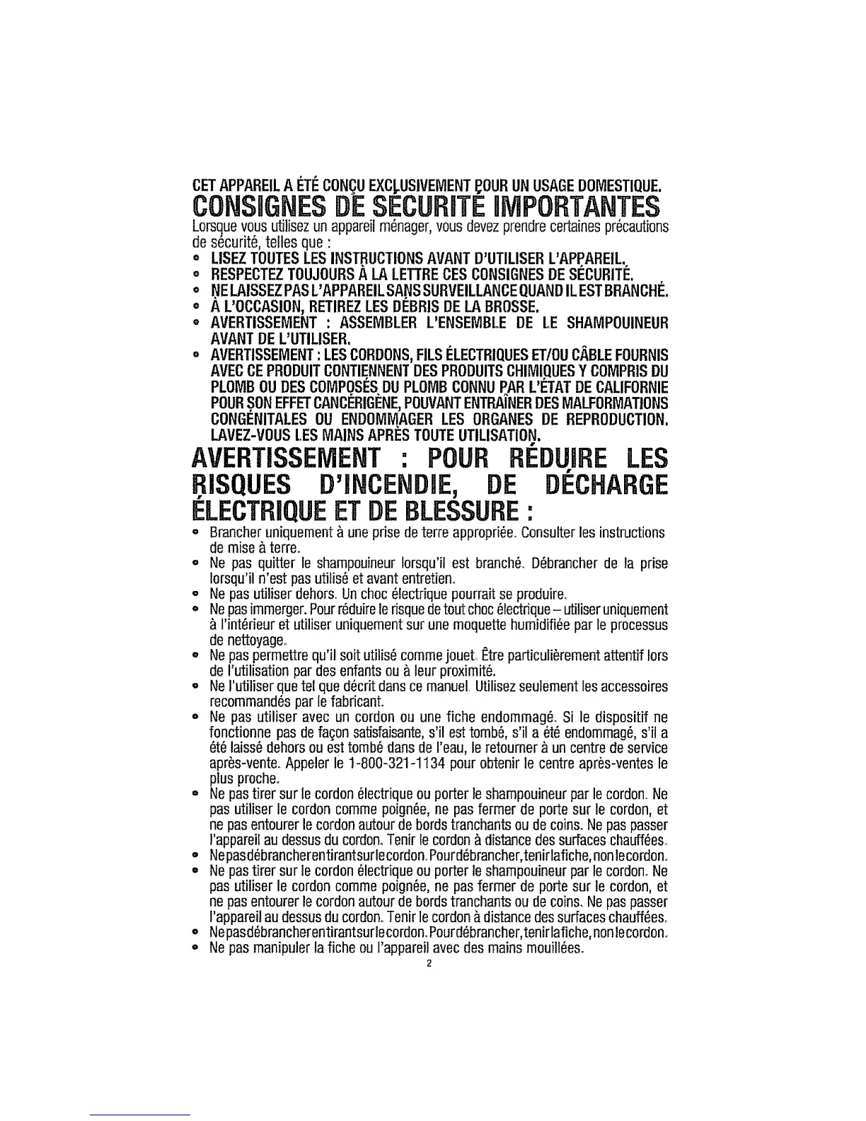 . Ne pas quitter le shampouineur Iorsqu'il est branch,. D6brancher de la prise