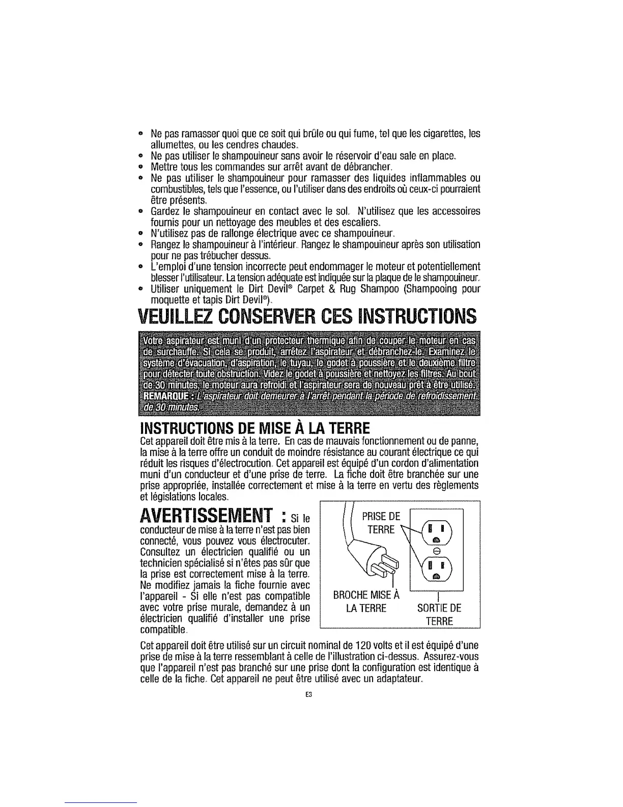 Cet appareil doit _tre mis _ la terre. Encas de mauvais fonctionnement ou de panne,