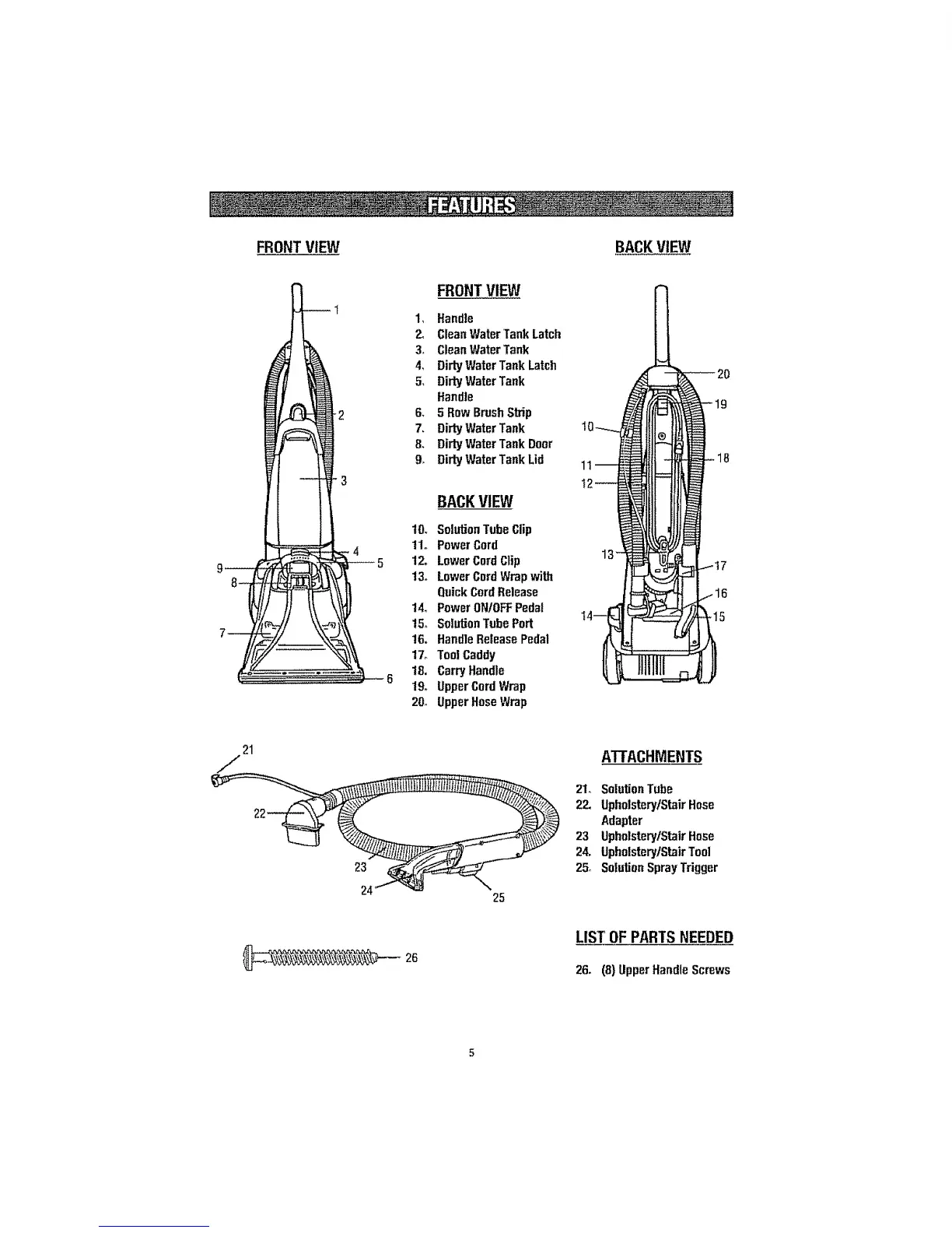Dirt Devil CE6600 - Features; Front View; Back View; Attachments