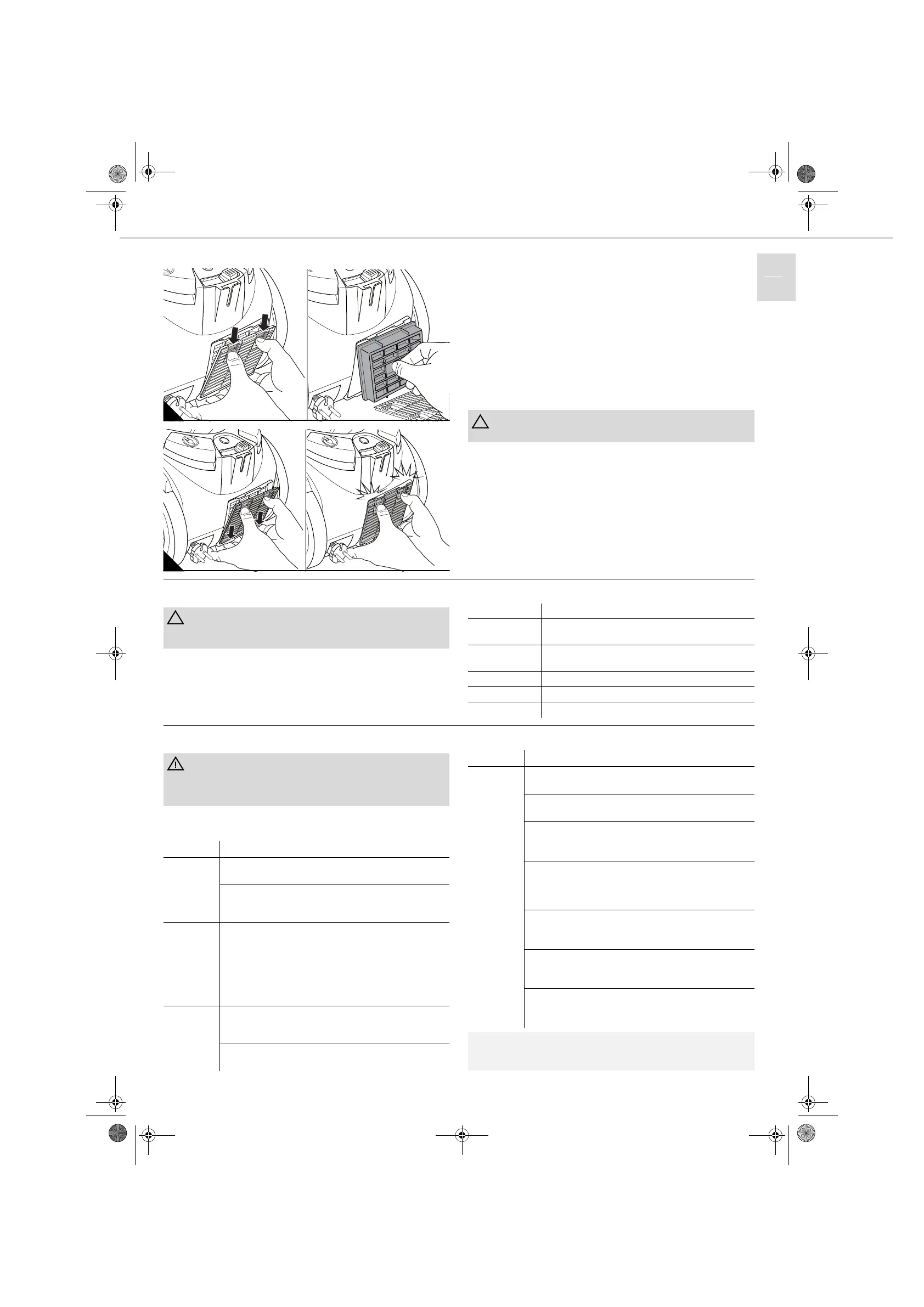 Clean the filter inserts, chapter 5.2, "Cleaning filter in-