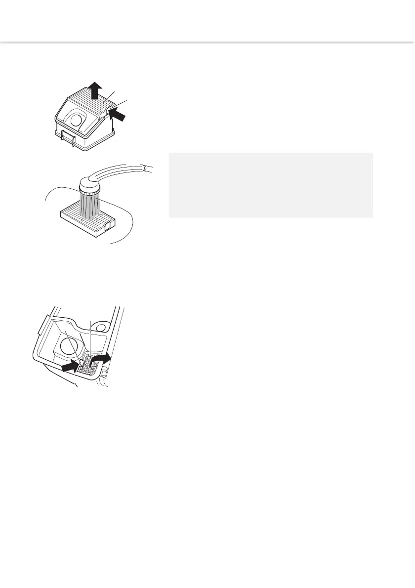 lock (Fig. 28/1) in and lift the filter grid up and out.