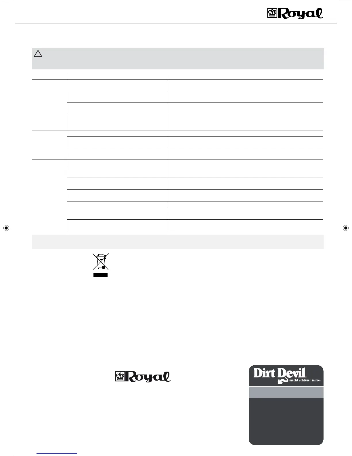 Bevor Sie Ihren zuständigen Royal-Vertragshändler, Royal-Servicepartner oder Ihren Fachmarkt kontaktieren, überprüfen Sie anhand der folgenden Ta-