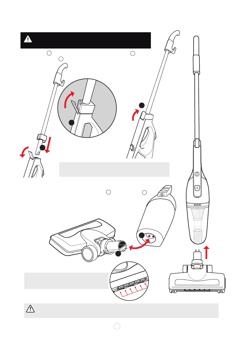Insert the end of the handle into the main body. Then, lift lock switch upward