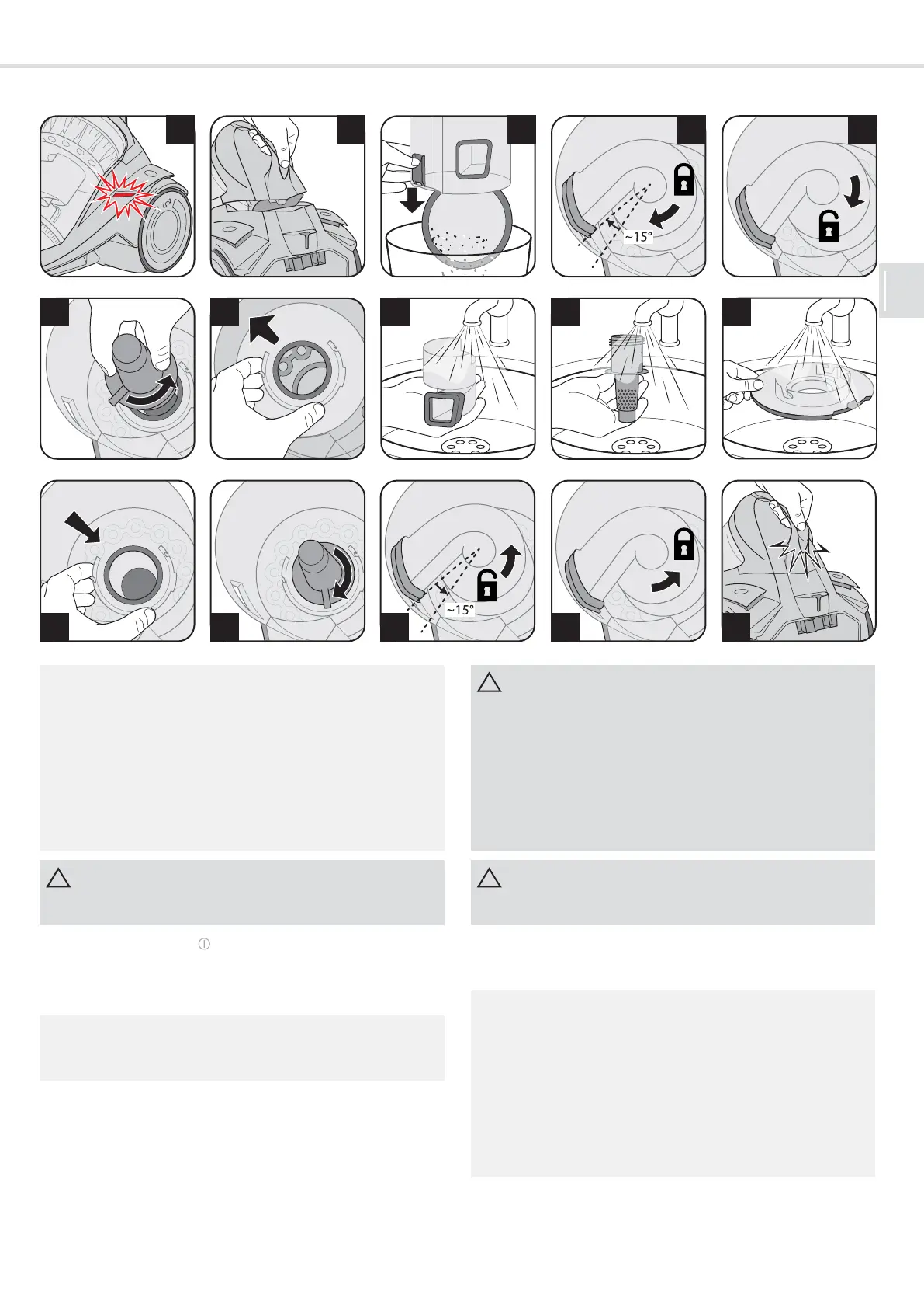 Lock the main cyclone by tightening it approx. 15° in anti-clockwise