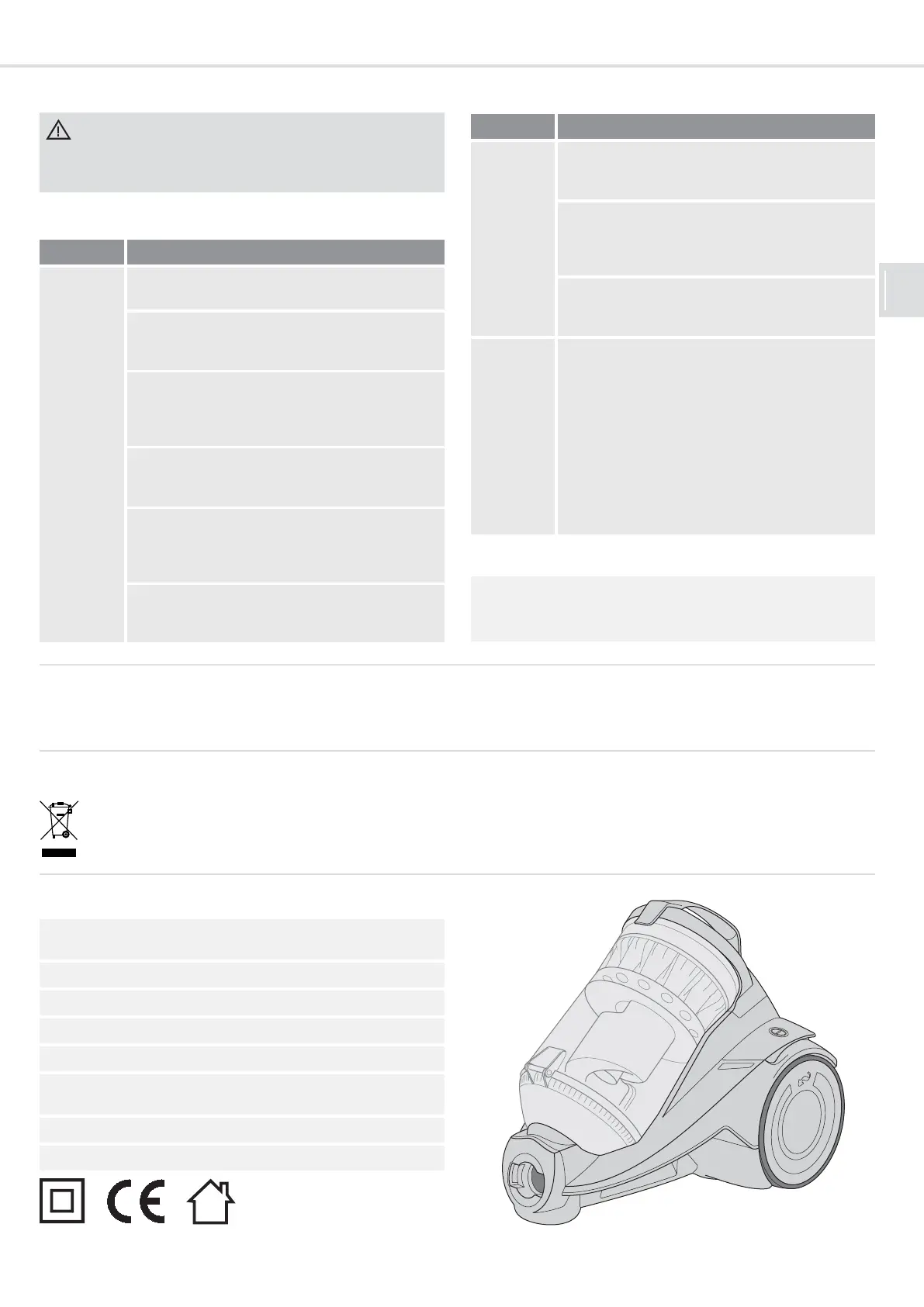 Type of appliance : bagless multi-cyclonic