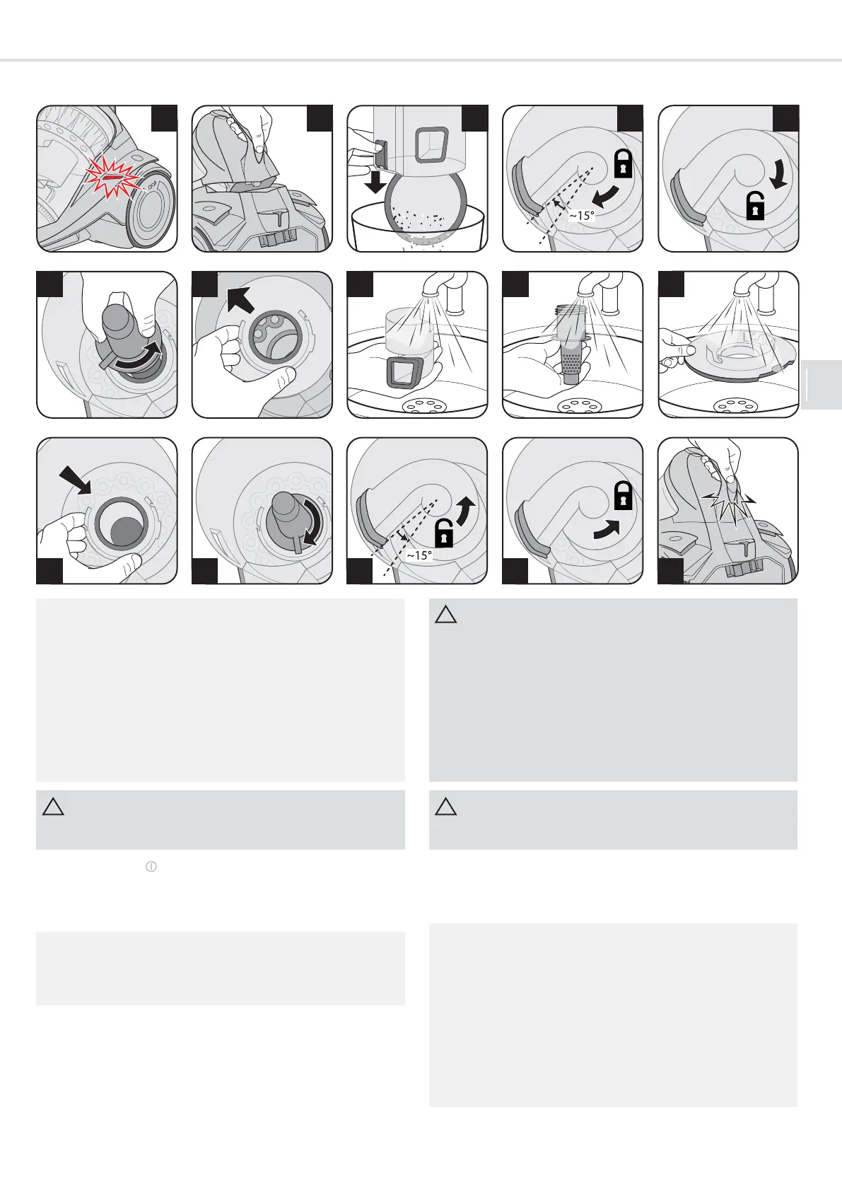 Le bac à poussière doit être vidé et nettoyé à intervalles réguliers, sous