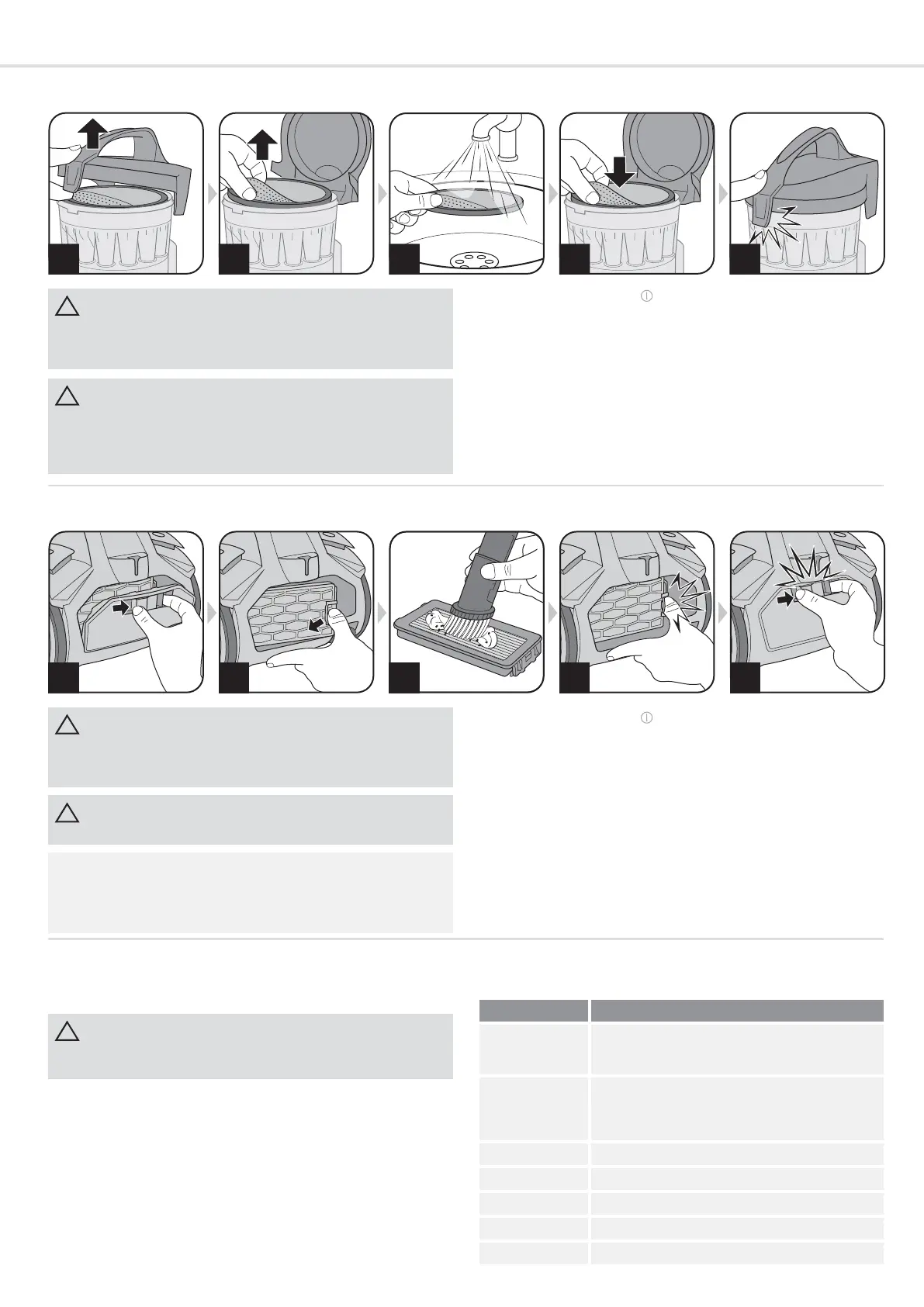 Reinig het filter elke keer, als u de stofbak reinigt. Vervang het filter