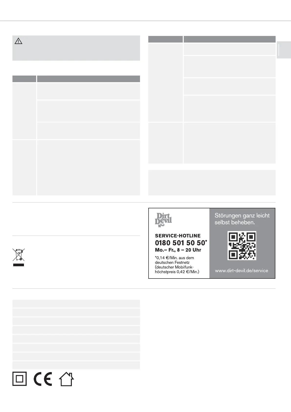kontaktieren Sie die Service-Hotline (Z siehe unten) oder den Dirt