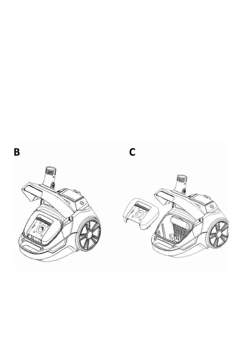 1. Entfernen Sie den HEPA-Filter (12) von dem Staubbehälter, indem