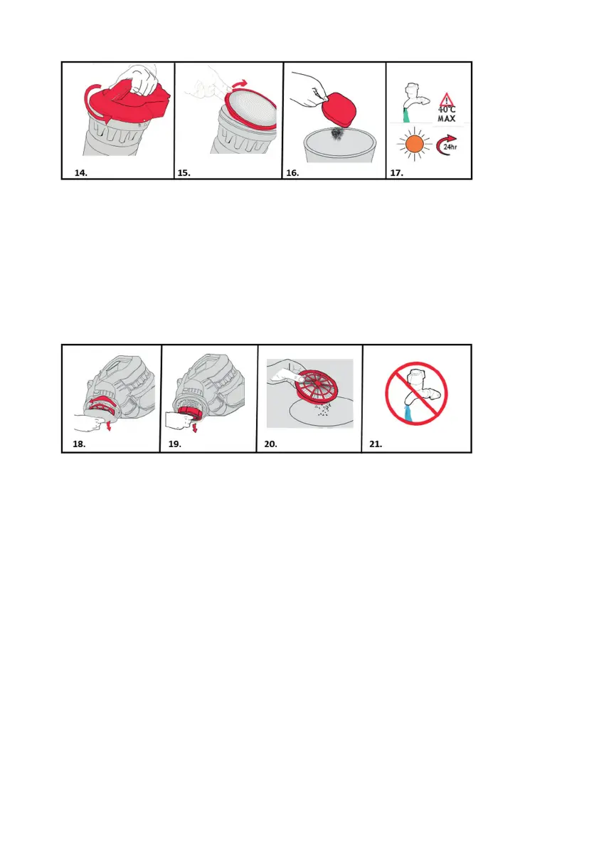 17. Skölj ltret under vatten (max 40°C). Låt torka i 24 timmar eller