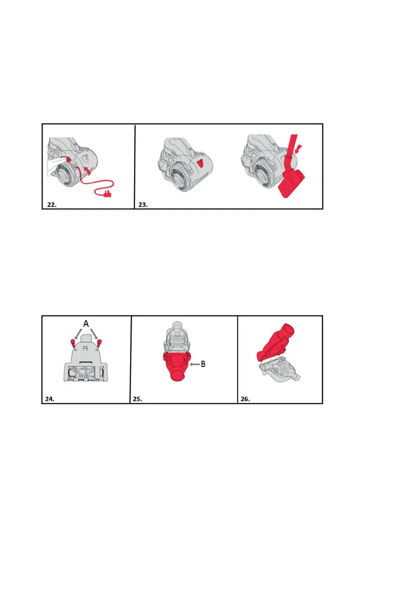 25. Scoateți capacul inferior (B). Curățați orice reziduuri sau păr