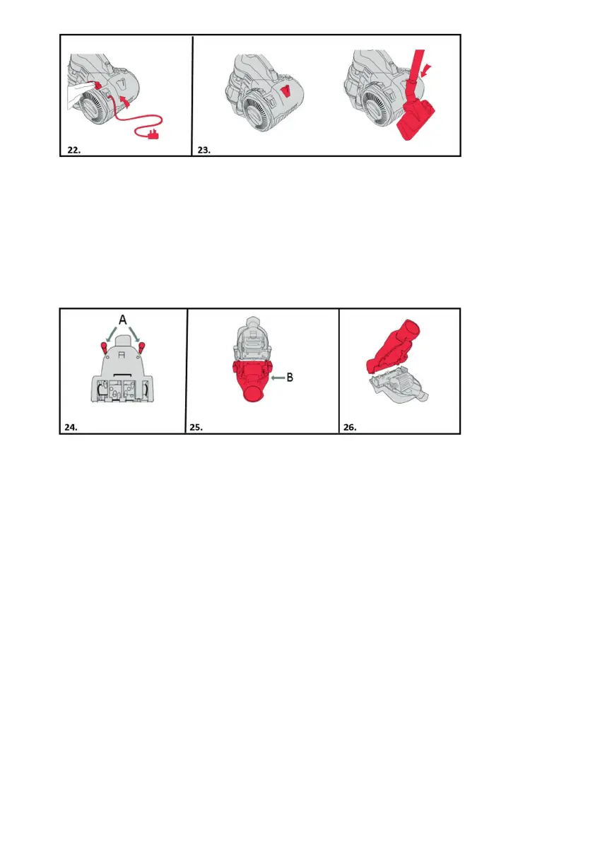 23. Pro pohodlnější skladování a přenášení je vzadu na vysavači