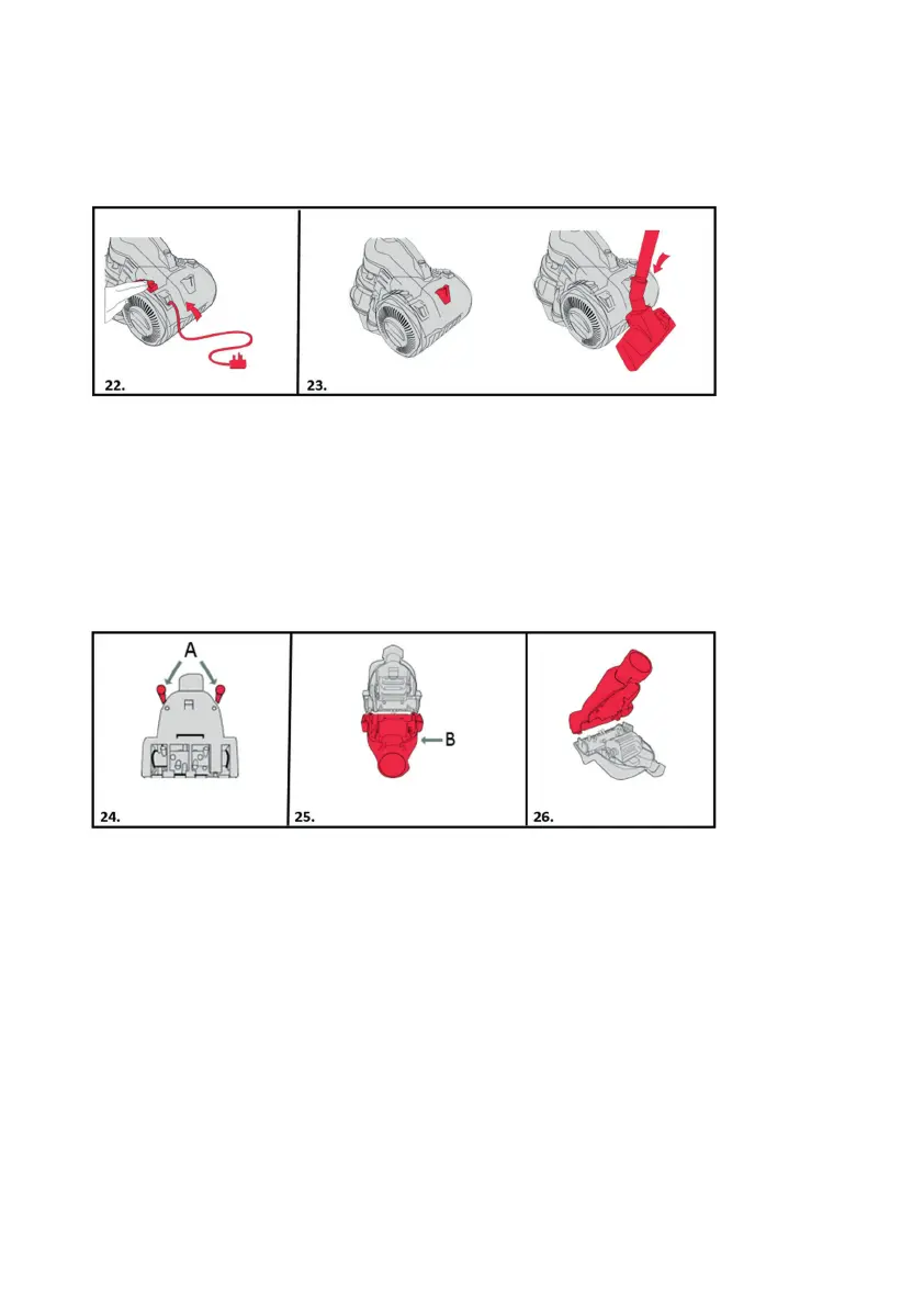 24. Vyberte spodný kryt (B). Vyčistite rotačnú kefu a turbínový