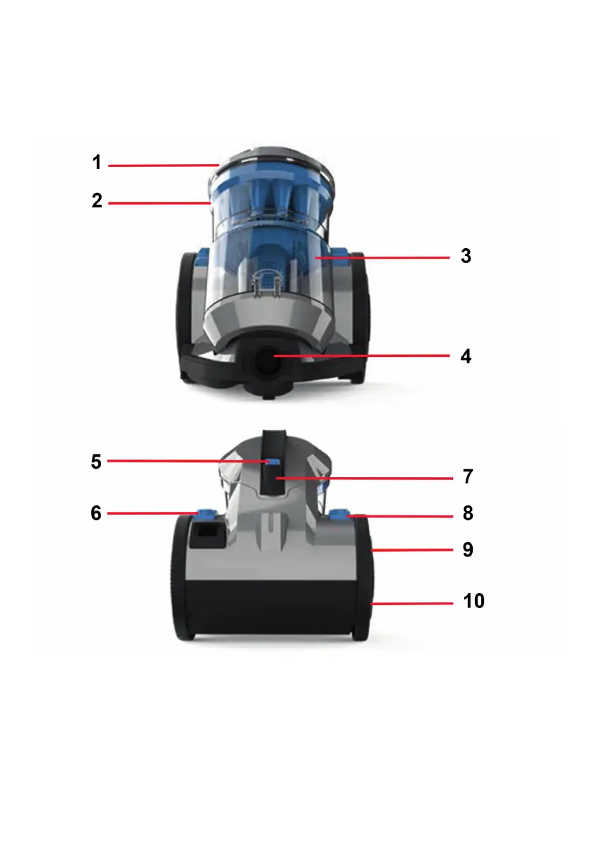5. Ontgrendelknop reservoir 10. Binnenwiel en lterbehuizing