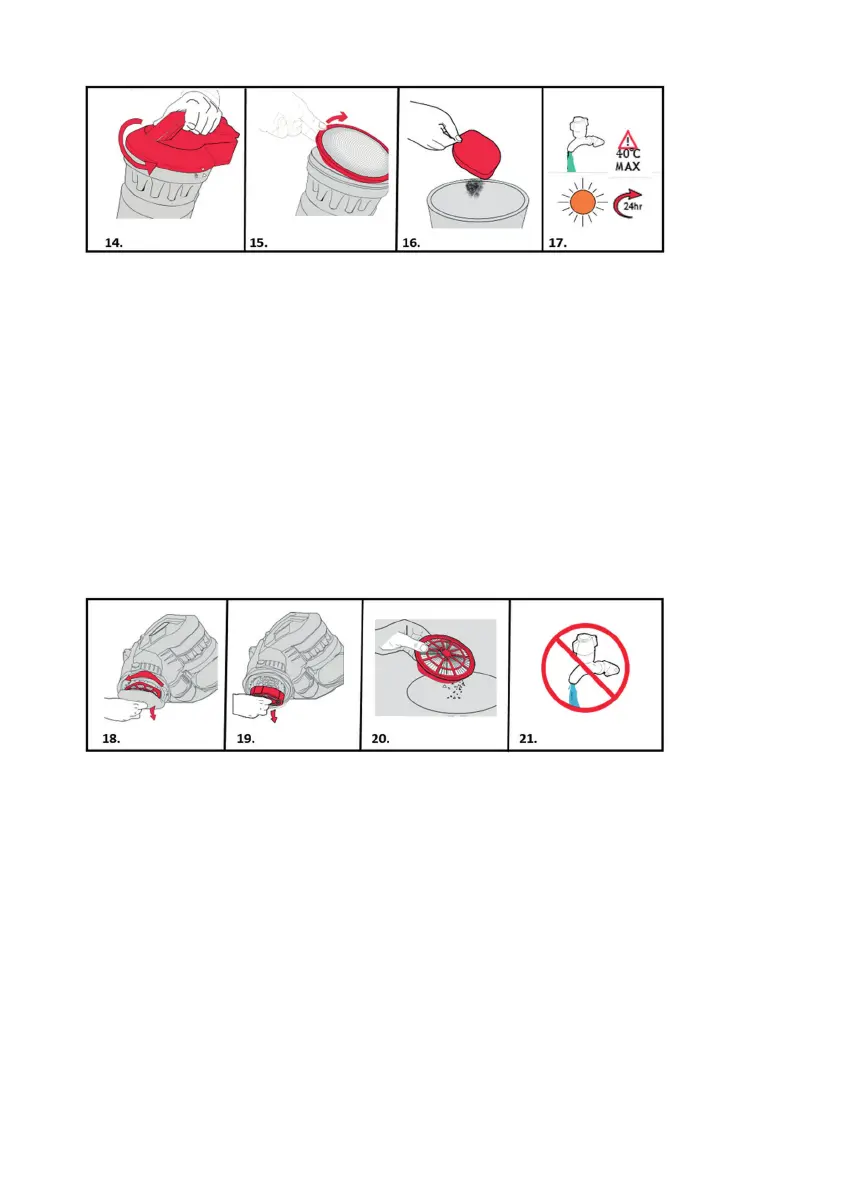 17. Sciacquare il ltro sotto l'acqua corrente (temperatura