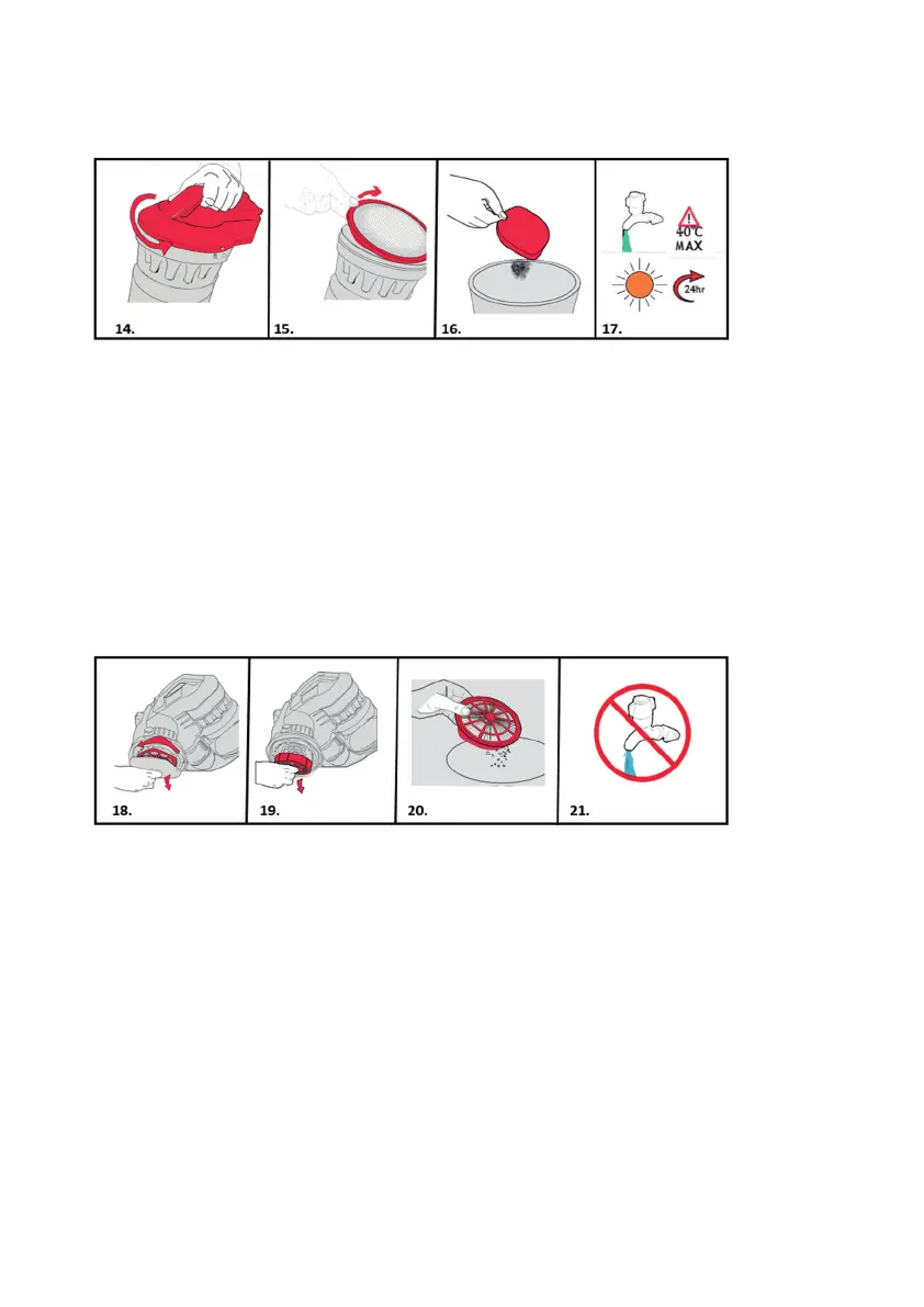 17. Enjuague el ltro bajo el agua (40 °C máx.). Déjelo secar