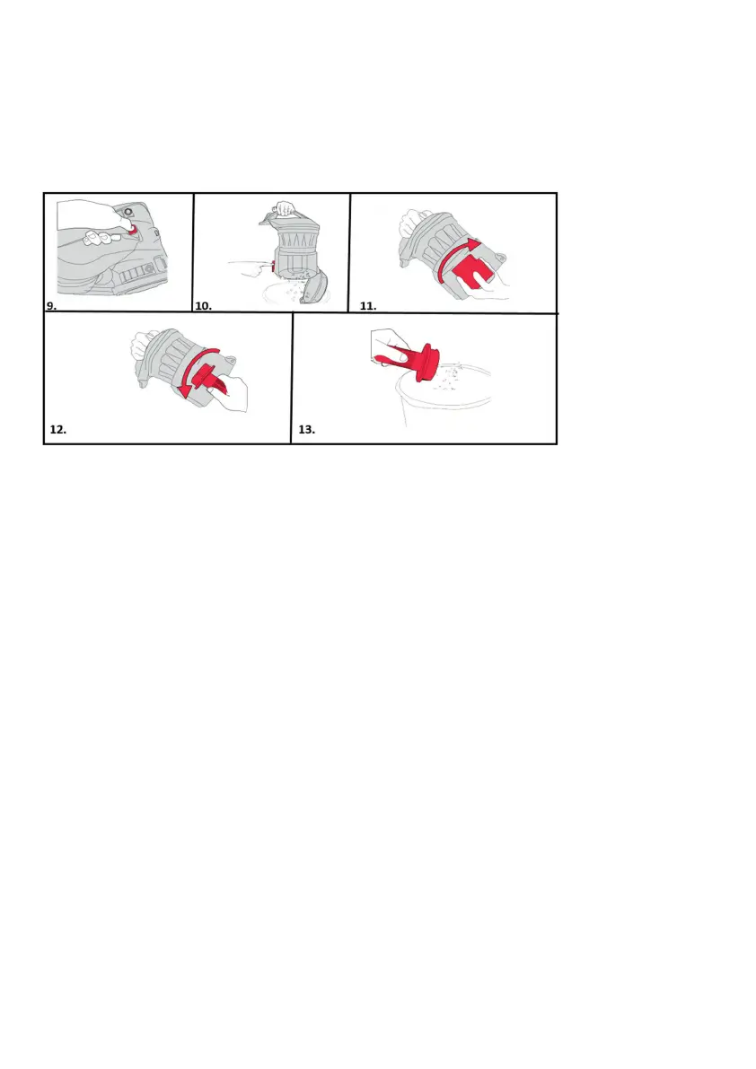 11. Irrota pölysäiliön sisällä oleva pölyerotin kääntämällä