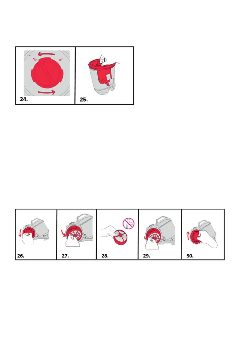 24. Plaats de vuilscheider weer in het stofreservoir. Zorg ervoor dat