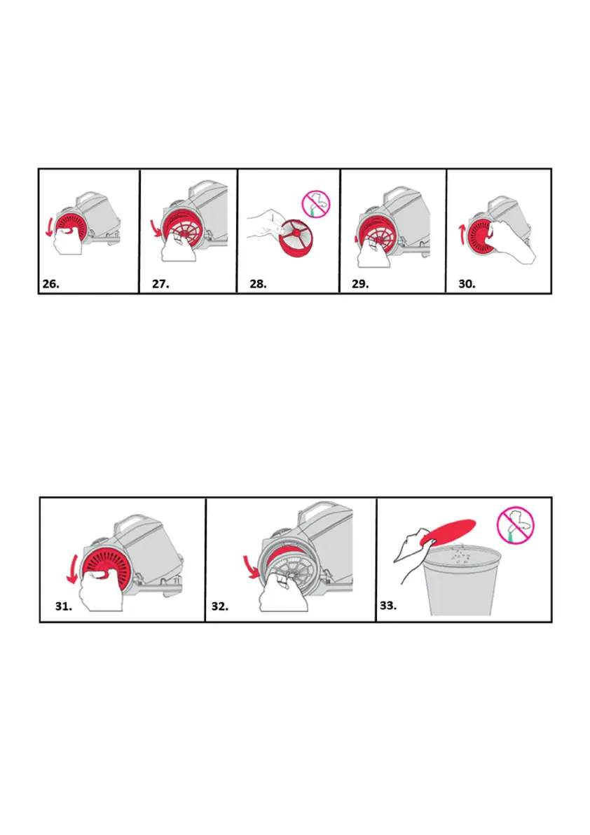 29. Allineare le linguette del copriltro con la ruota e girare in senso
