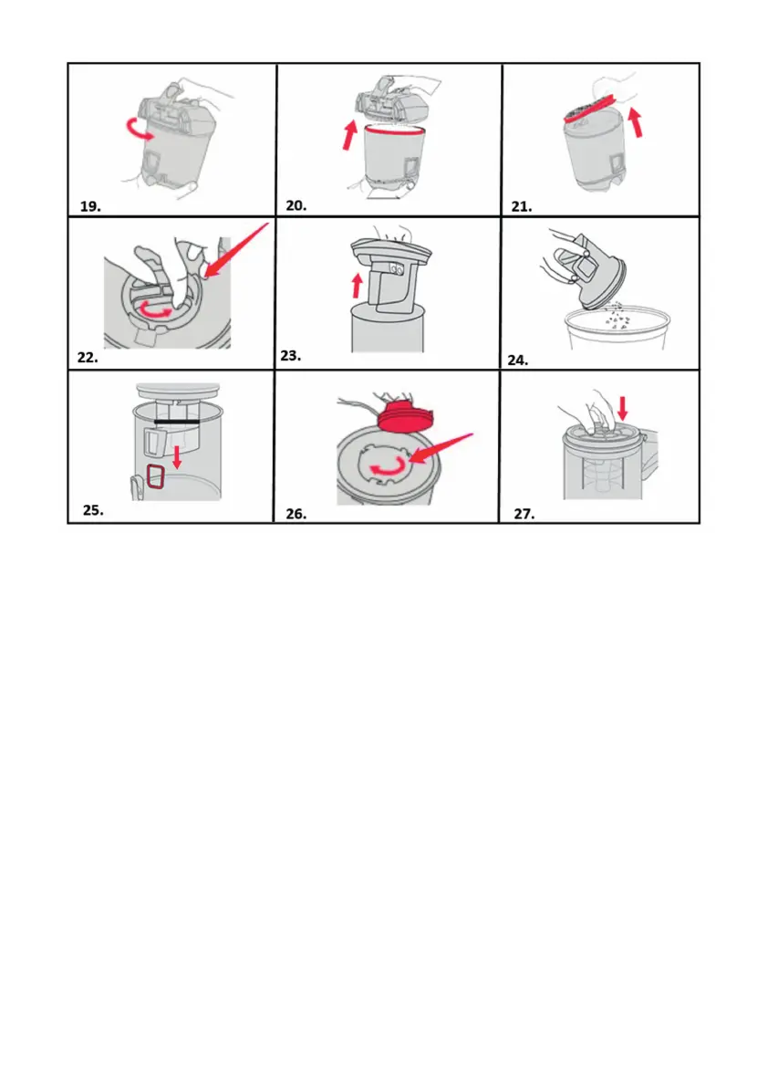 19. Halten Sie den Schmutzbehälter und drehen Sie den Deckel gegen