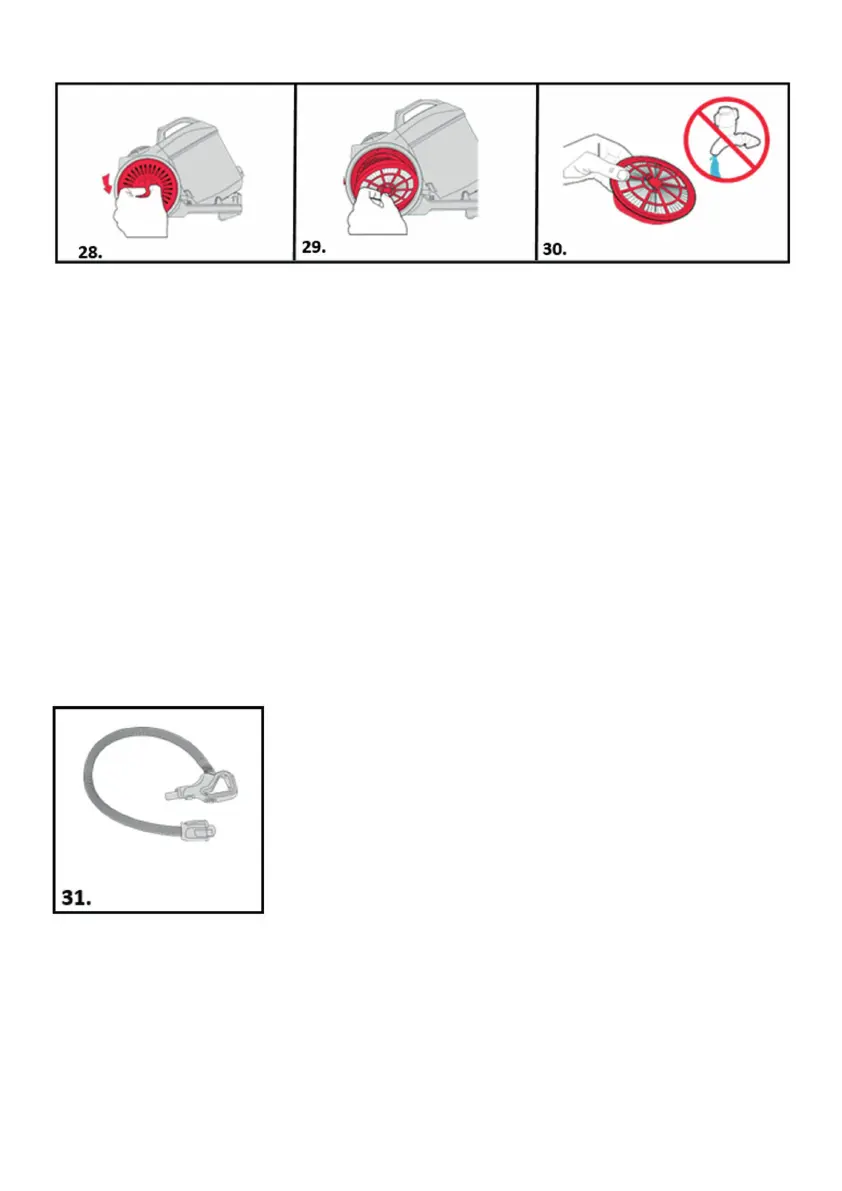 31. Quite la manguera de la aspiradora y del tubo de extensión