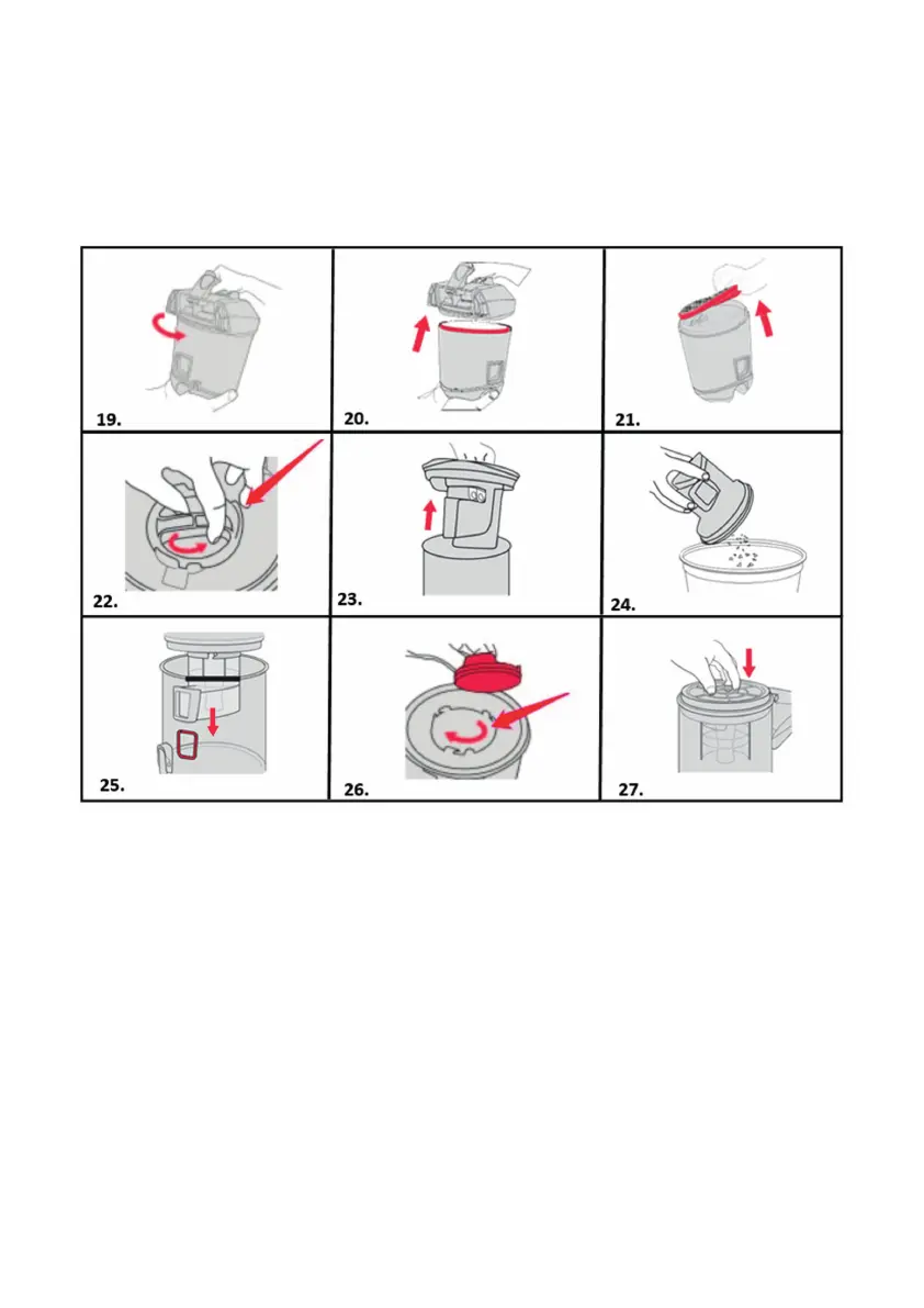 19. Hold the dirt container and twist the lid anti-clockwise.