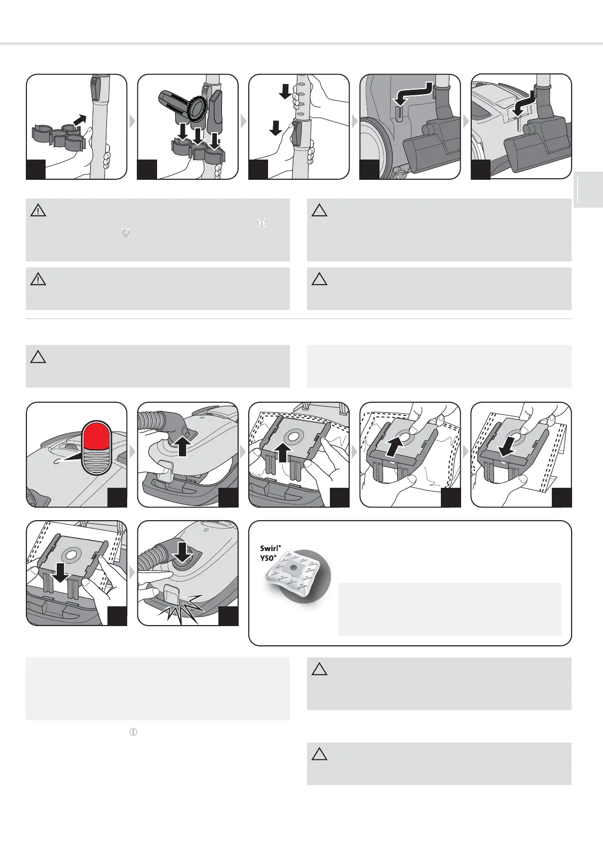 Switch off the appliance before changing the dust filter bag. Otherwise,