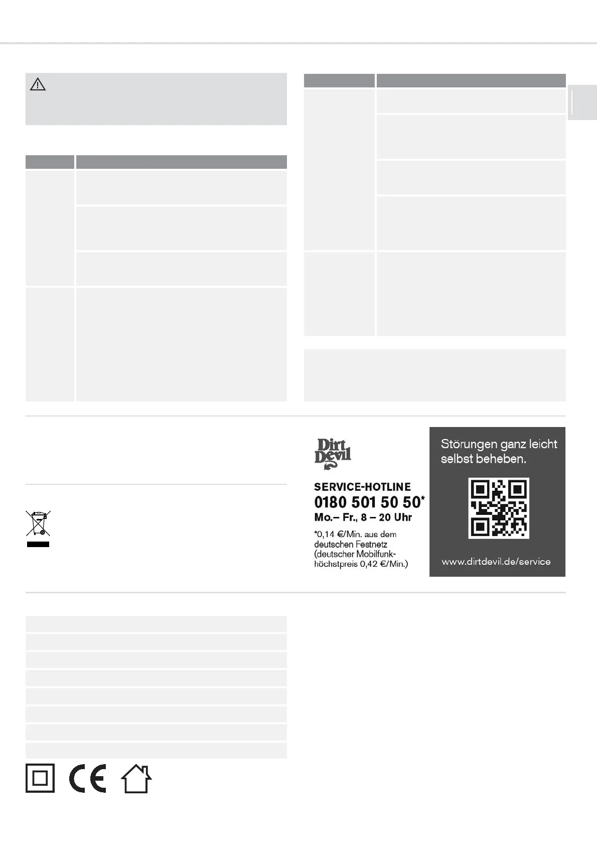 kontaktieren Sie die Service-Hotline (Z siehe unten) oder den Dirt