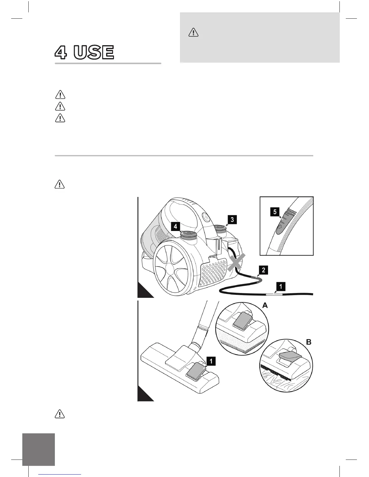 IMPORTANT: Take extra care when positioning and using the vacuum cleaner on the stairs