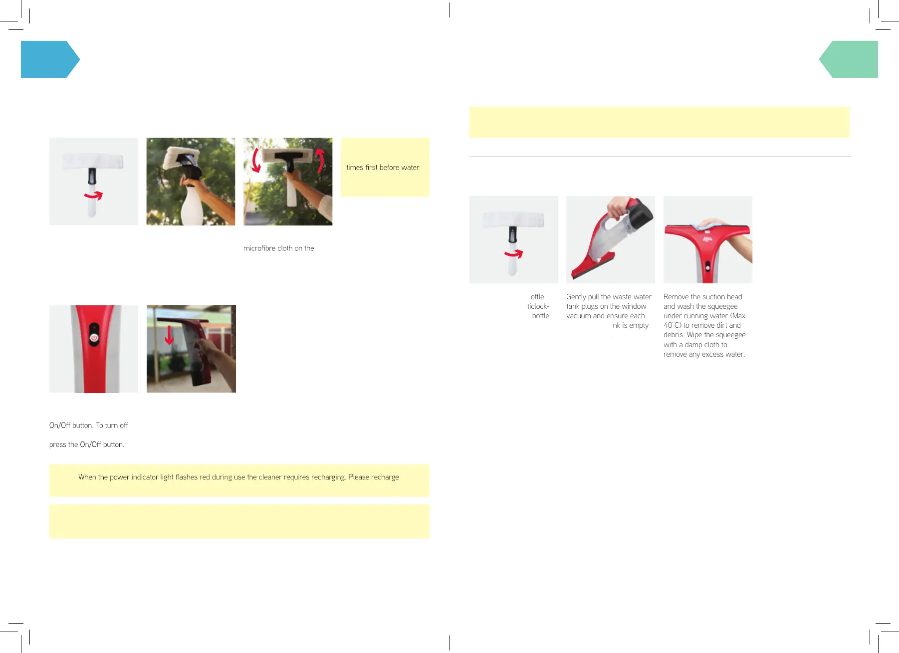 NOTE: The window vacuum and spray bottle must be emptied after each use. Do not store water in the window