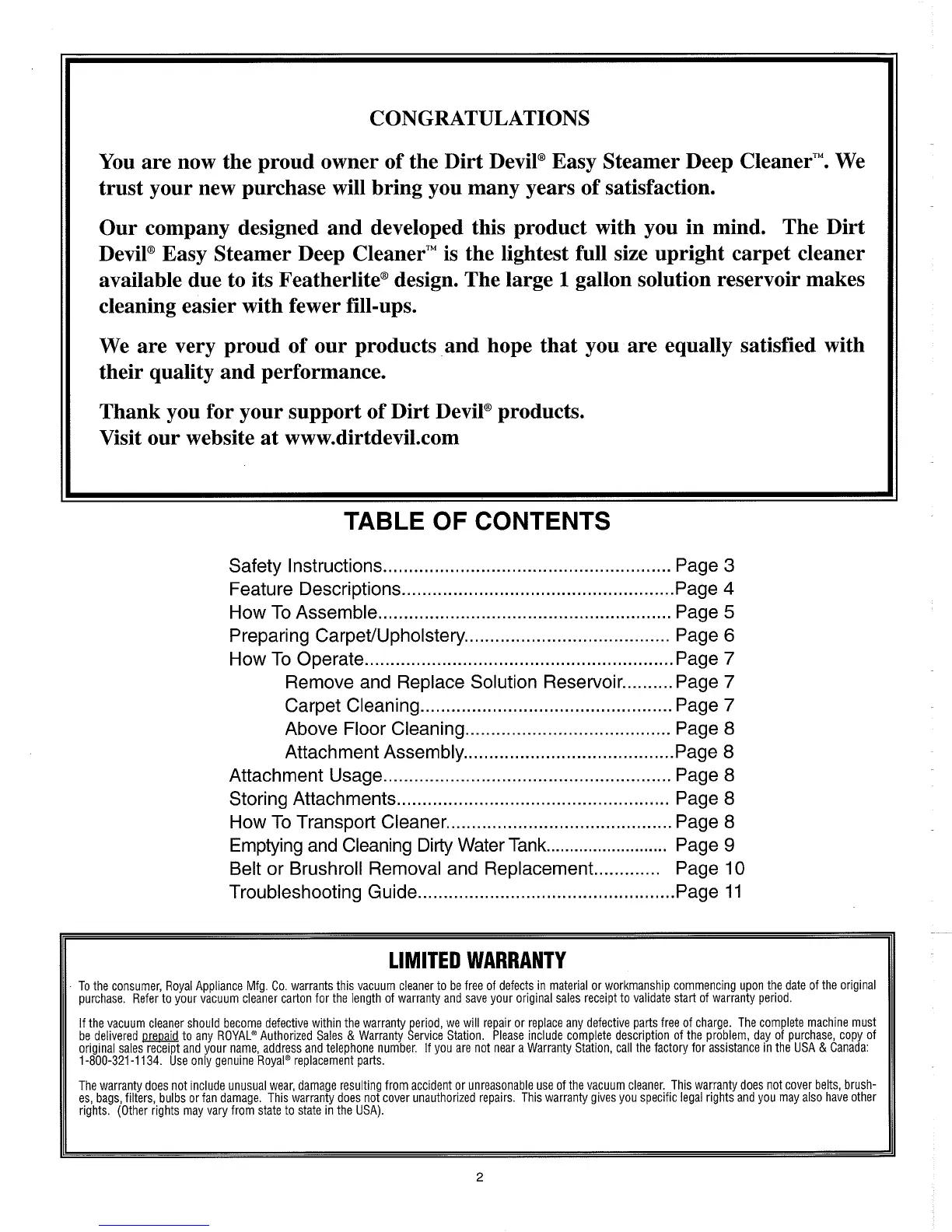 Visit our website at www.dirtdevil.com