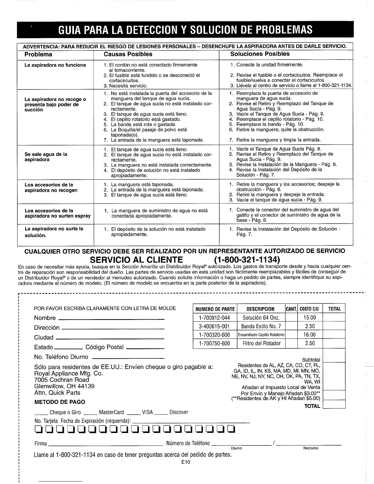 un Distribuidor Royal" o de un vendedor al rnenudeo autorizado. Cuando solicite inforrnacion o haga un pedido de partes, siempre identifique su aspi-