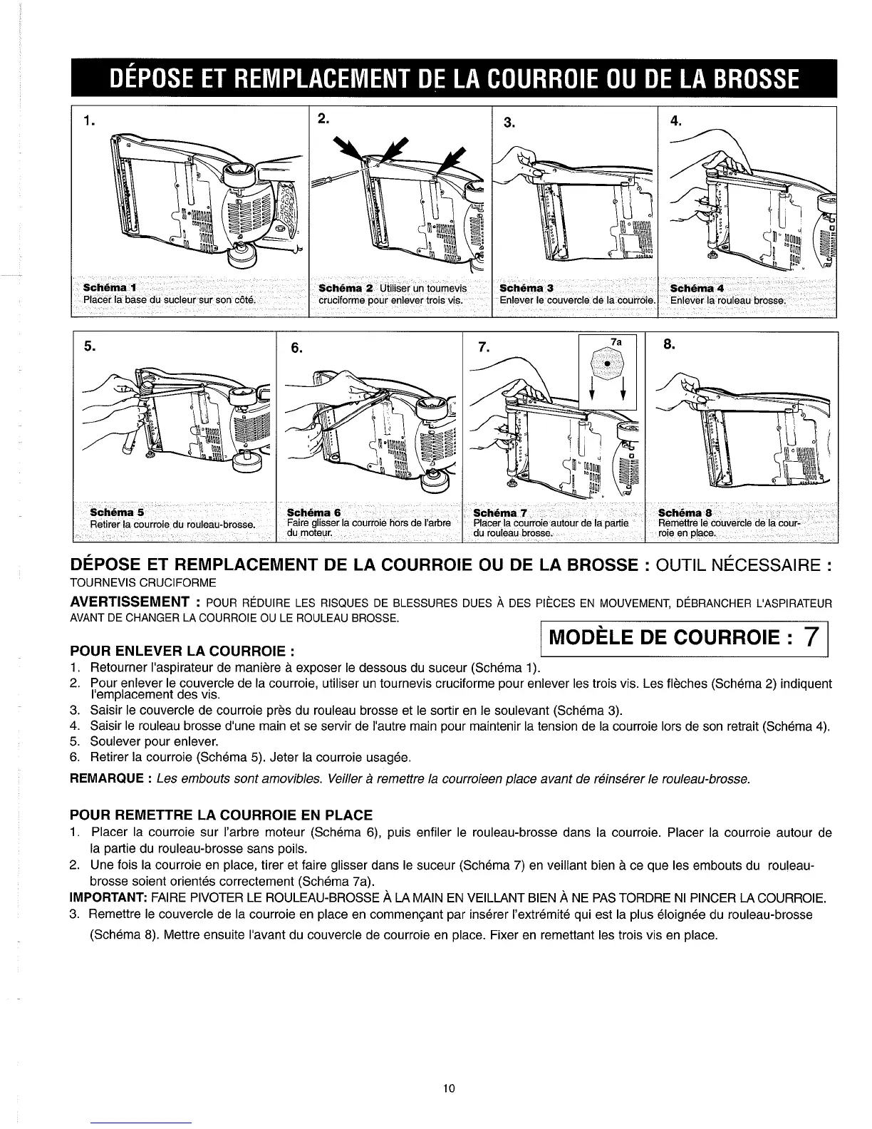 AVANT DE CHANGER LA COURROIE OU LE ROULEAU BROSSE.