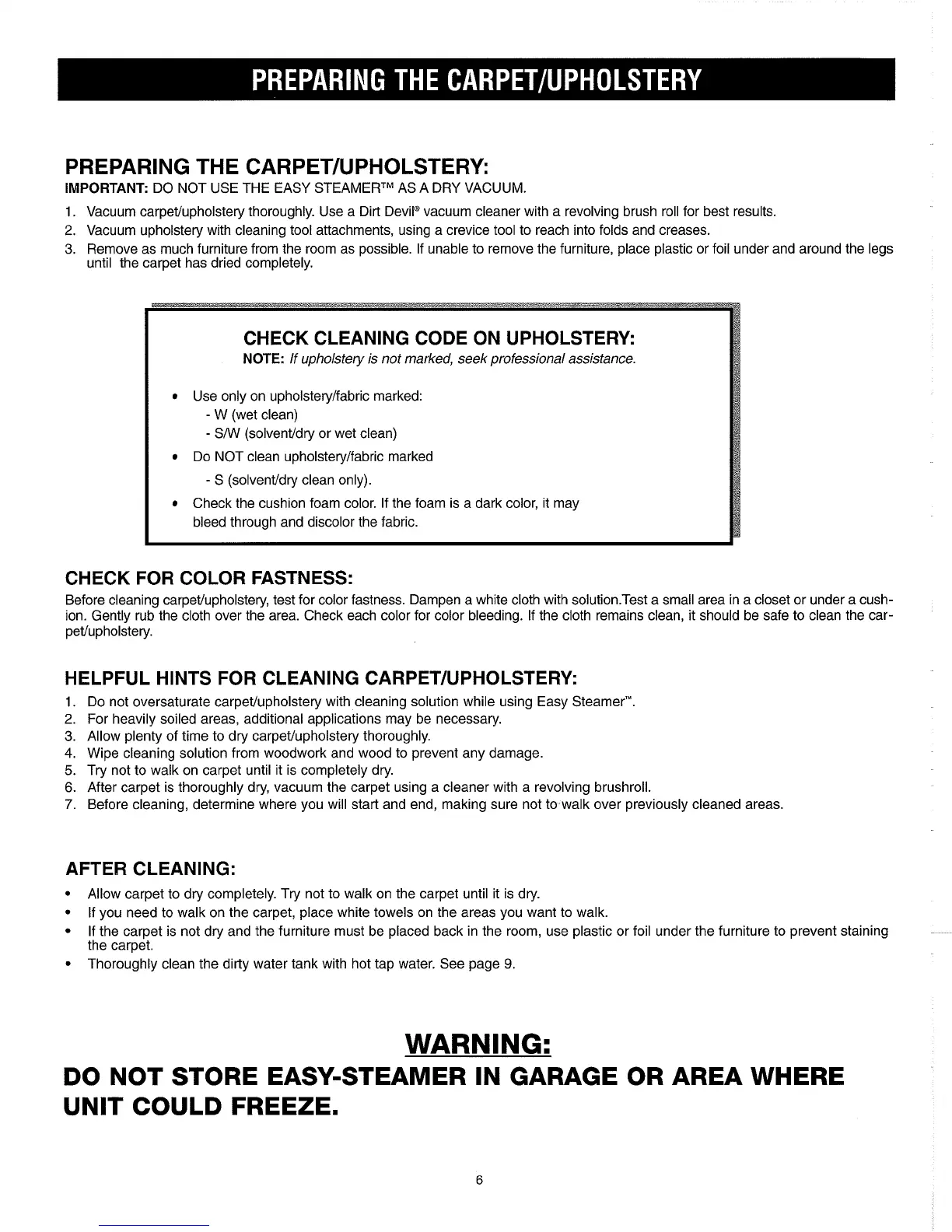 Do not oversaturate carpethpholstery with cleaning solution while using Easy Steamer'".