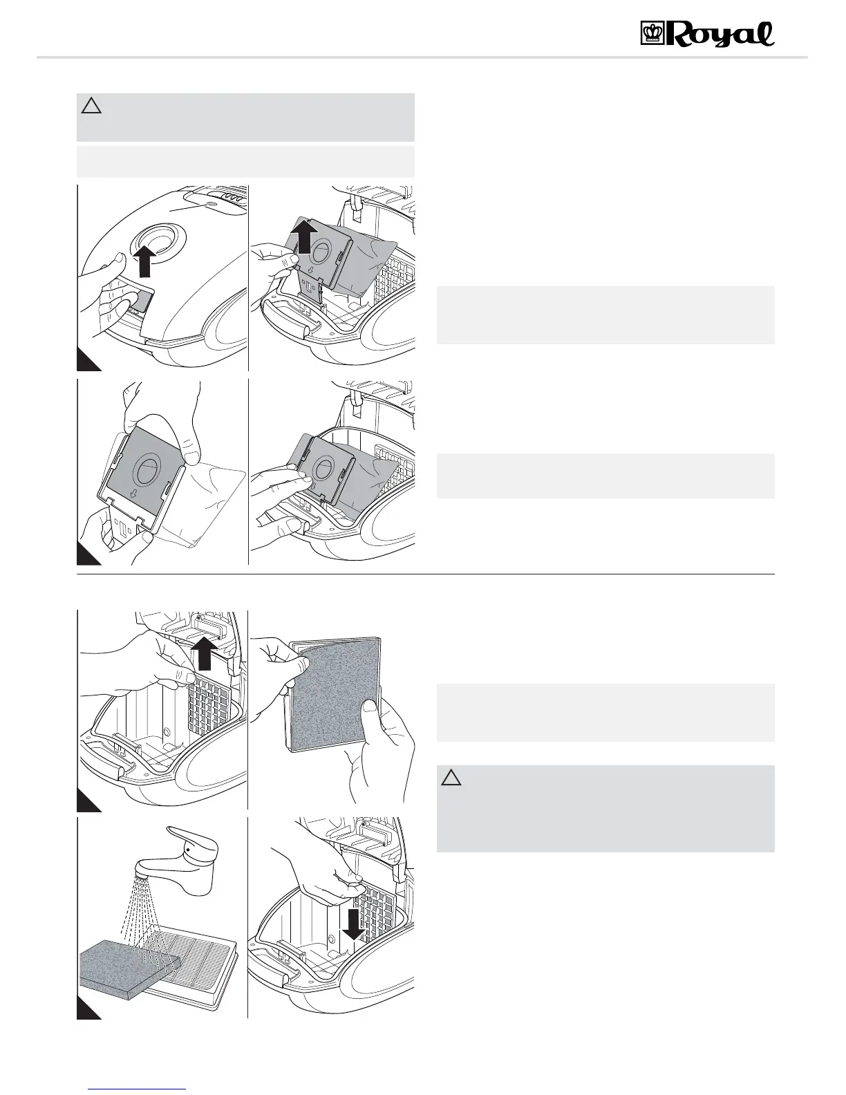 1. Switch off the appliance and remove the filter bag holder with the dust