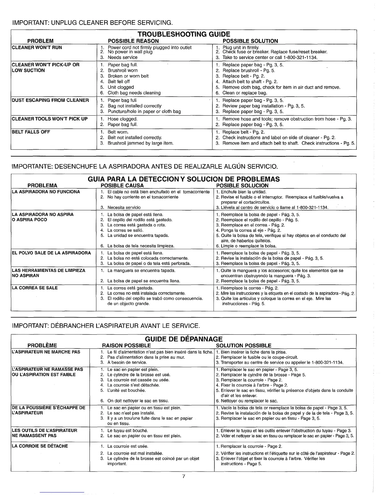 IMPORTANT: UNPLUG CLEANER BEFORE SERVICING.